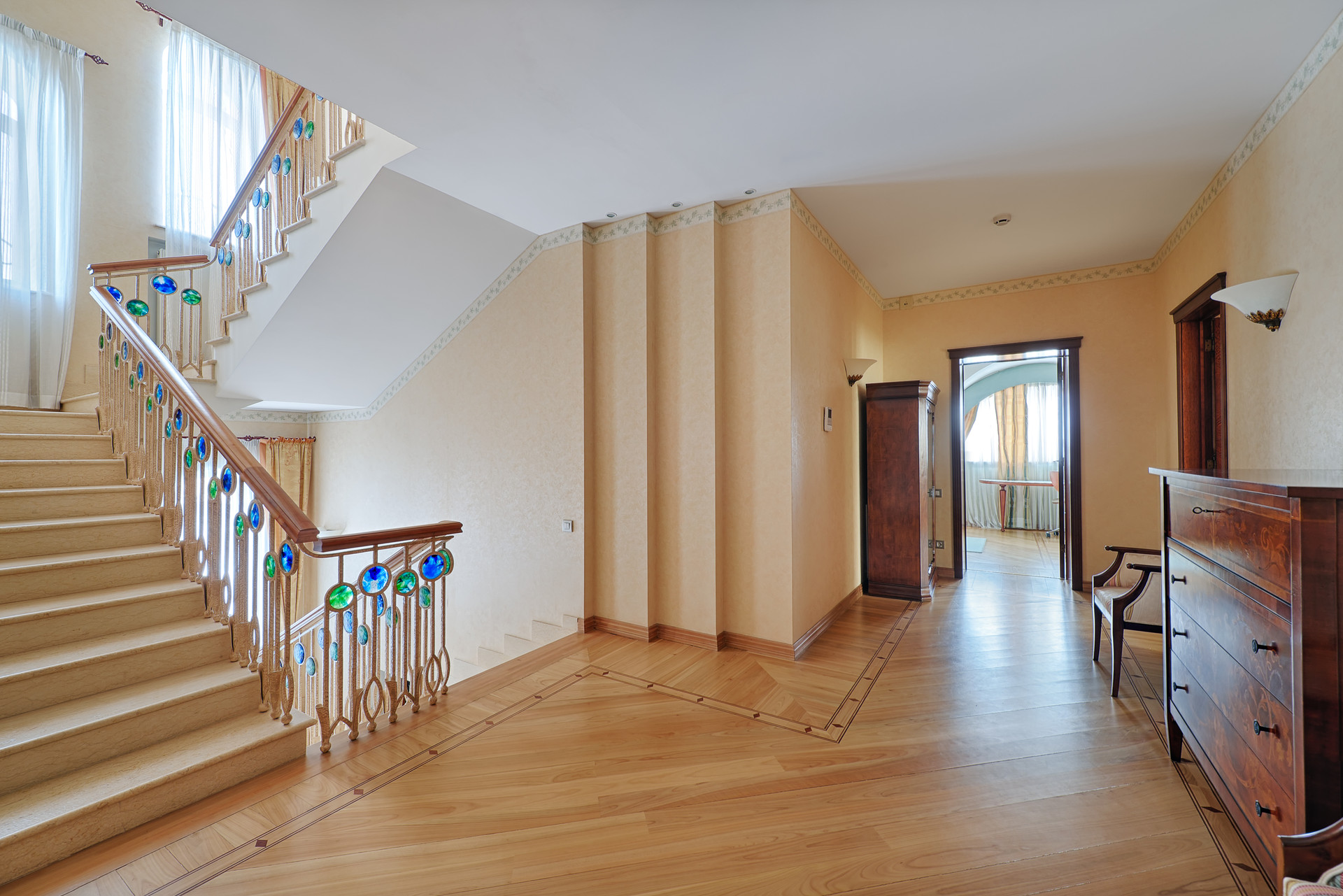 2-й этаж: 3 спальни с полными санузлами (ванны, джакузи, душкабины, биде, балкон).