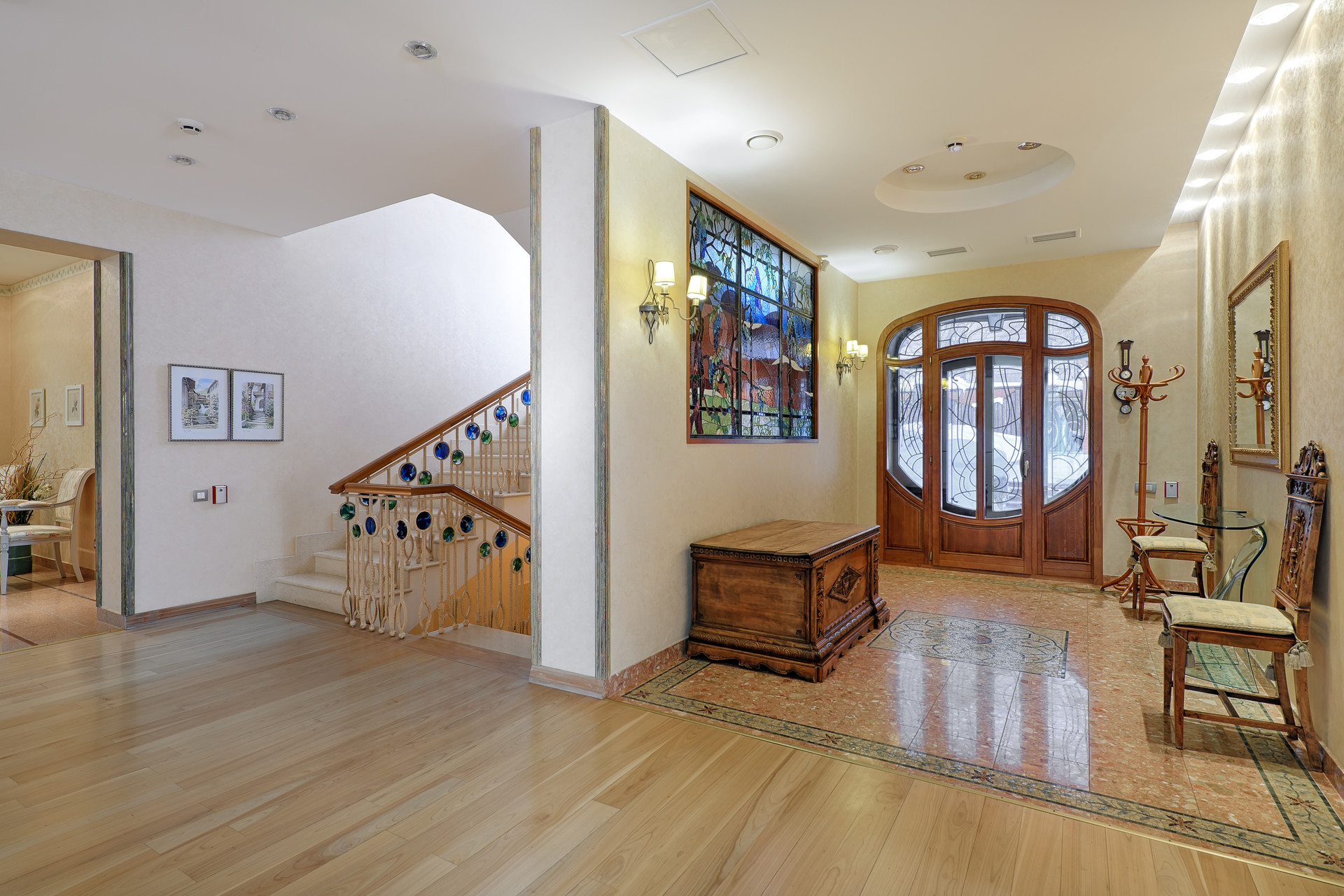 Просторный СТИЛЬНЫЙ красивый кирпичный дом с отделкой премиум-класса и очень грамотной и удобной планировкой. Все 6 спален и почти все помещения в доме со СВОИМИ САНУЗЛАМИ (10 шт.). 2 настоящих КАМИНА (в гостиной и основной спальне из розового мрамора), ПОДОГРЕВ полов во всем доме. Лестница между этажами из обожжённого мрамора, перила с витражами (Мурано).