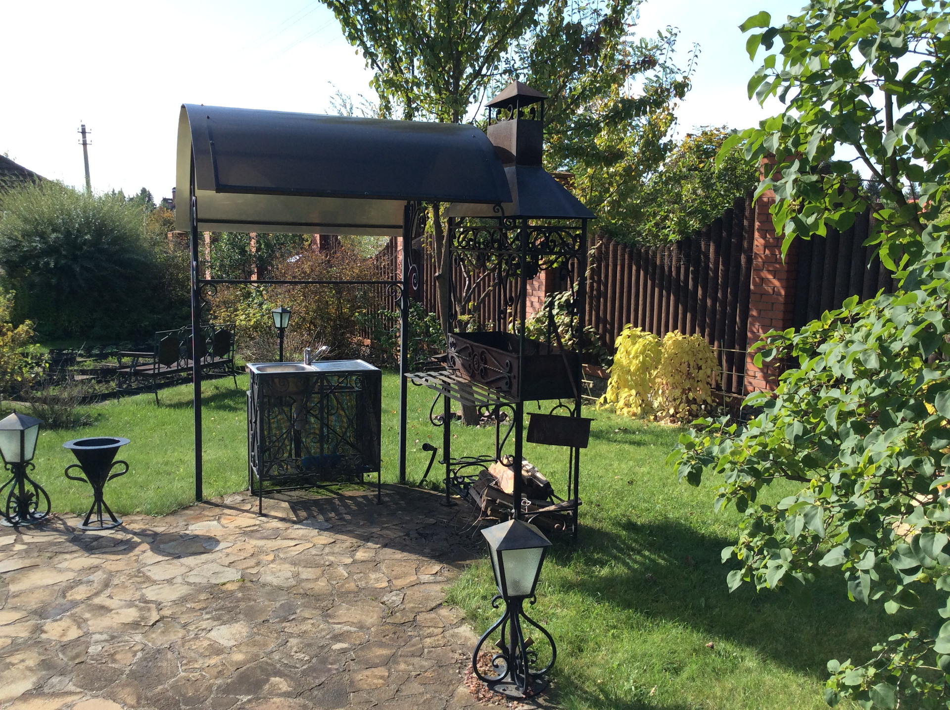 -КОПТИЛЬНЯ на (дровах); БЕСЕДКА с МАНГАЛОМ; небольшая КОФЕЙНАЯ БЕСЕДКА; МАСТЕРСКАЯ.