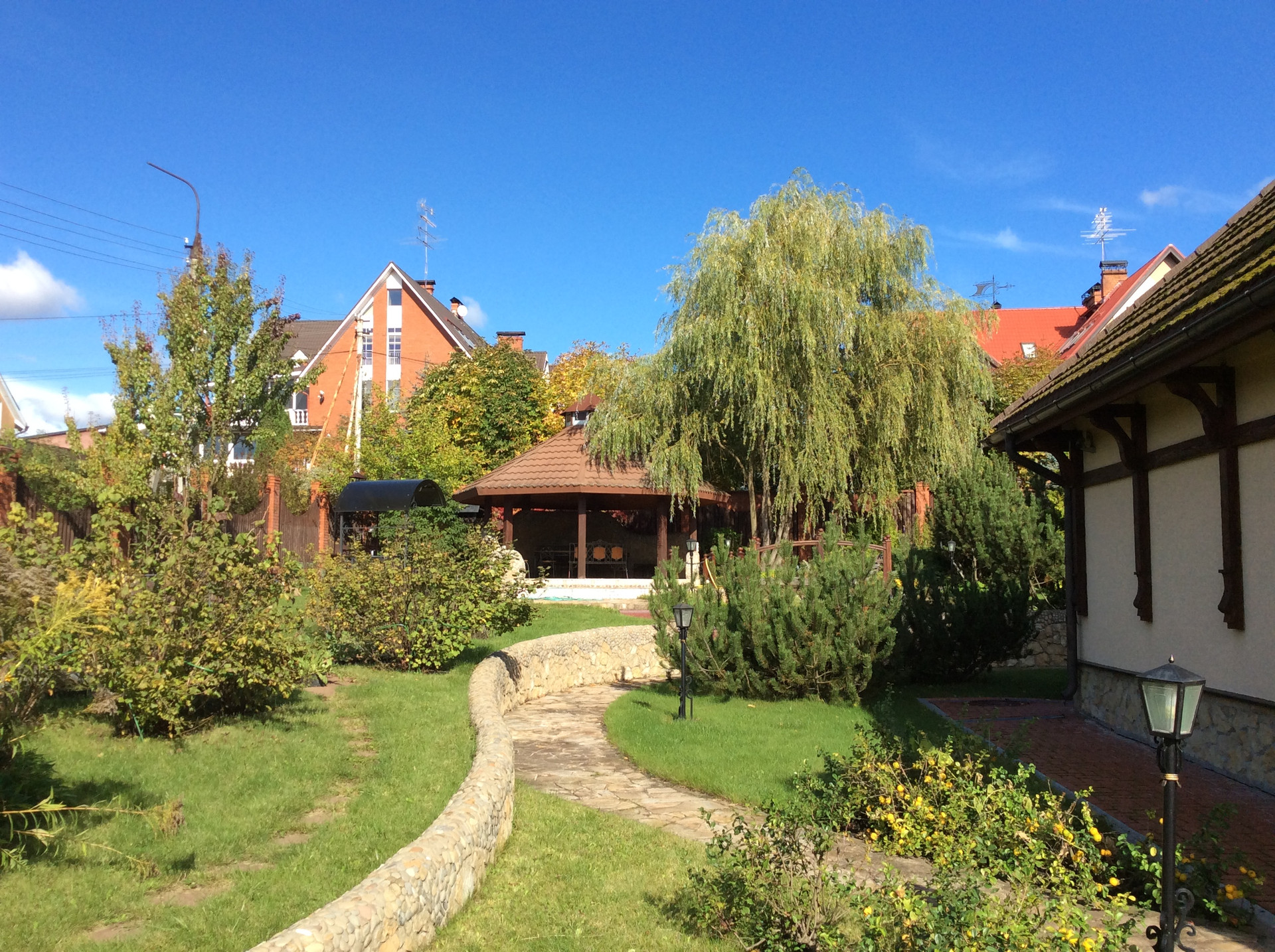 Дом под ключ с мебелью. Внутреннее и внешнее ВИДЕОНАБЛЮДЕНИЕ с записью со всех камер по периметру, с возможностью наблюдения в режиме онлайн на любом ТВ в доме., видеодомофон. СИГНАЛИЗАЦИЯ. ПОЖАРНАЯ сигнализация. ЦЕНТРАЛЬНОЕ водоснабжение и канализация. Установленная МОЩНОСТЬ 101 кВт (потребляемая-54 кВт при максимальной нагрузке-3 стабилизатора). Система КОНДИЦИОНИРОВАНИЯ-климат-контроль, вентиляциии. Котлы Wolf и Dietrich, договор на обслуживание. Резервный дизельный ГЕНЕРАТОР. ТЕЛЕФОНИЗАЦИЯ (мини АТС) внутри дома и между постройками.