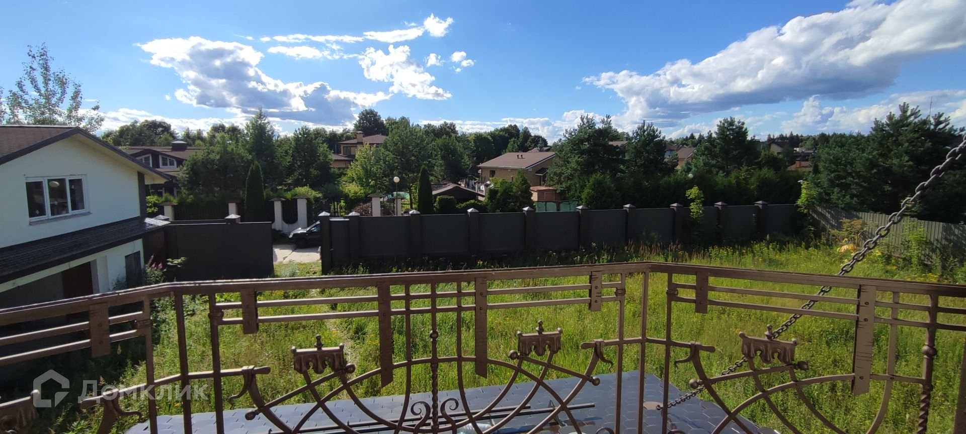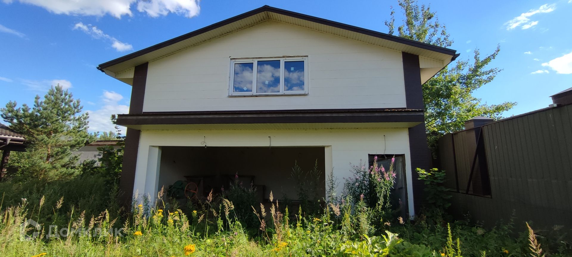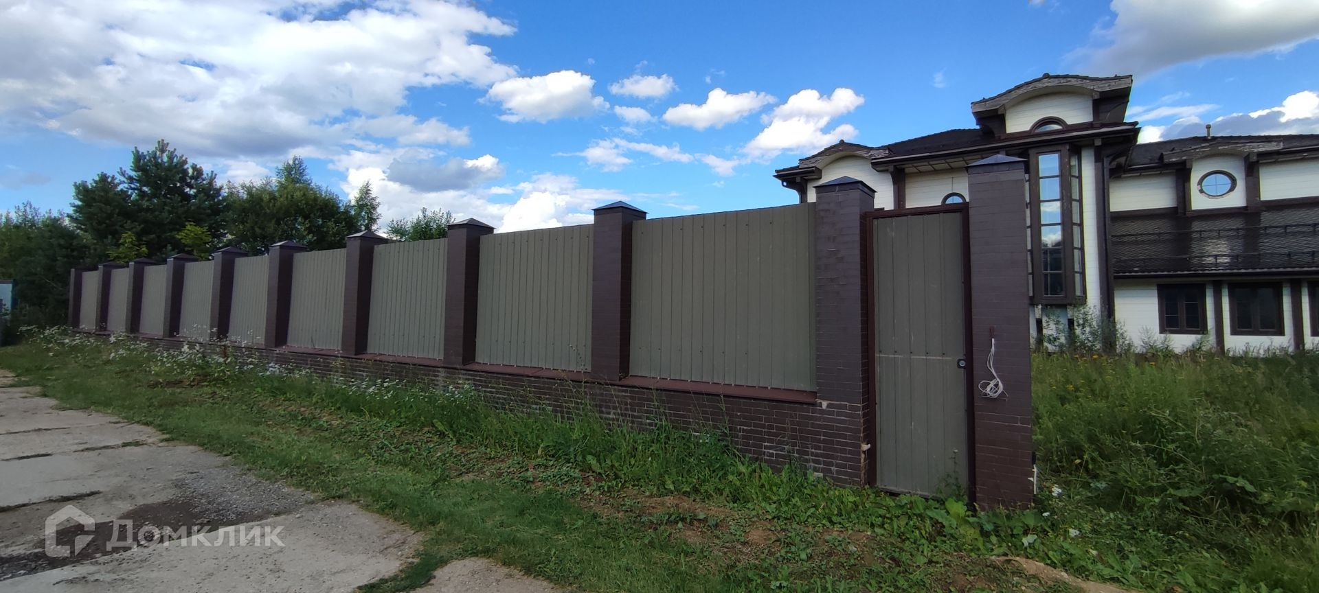 Участок площадью 25 сотки ровный, правильной формы, огорожен забором в сочетании профлист - кирпич, имеются лесные деревья. На участке большой двухэтажный гараж с подсобными помещениями, автоматическая въездная группа.