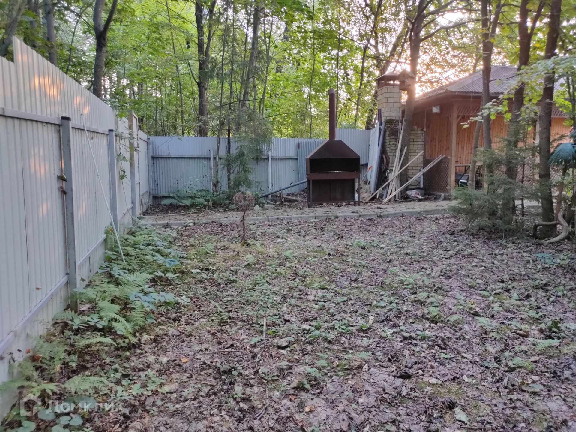 Проходя первый этаж насквозь Вы попадаете на задний двор дома, где есть зона отдыха в беседке с мангалом и баня. С этой части двора через калитку можно выйти в лес, либо пройдя в пределах двух минут выйти к автобусной остановке, которая соединяет эту точку отправления маршрутными автобусами или маршрутками следующими до Троицка, Подольска и метро "Тёплый стан".