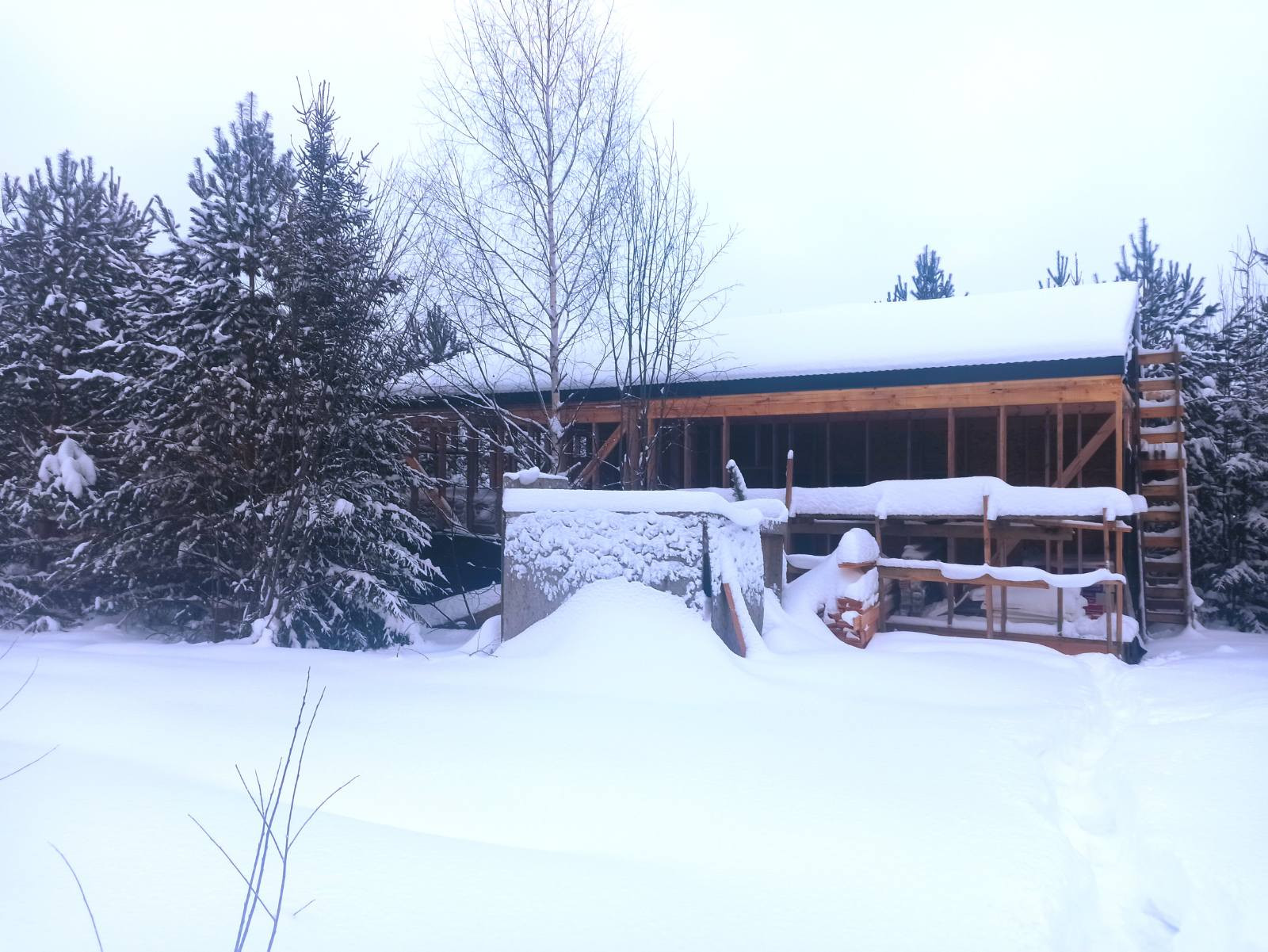Дом строился для себя, но обстоятельства изменились. Дом каркасный, построен с учетом СНИПов и с использованием профессионального инструмента (отдадим вместе с домом). Фундамент свайный 3-4 метра, толщина стенки сваи 7 мм. Электричество подключено. Газовая труба по краю участка. В поселке своя артезианская скважина, подключение к ней 25тр. Кровля завершена, утепление чердачного и цокольного перекрытий выполнено, пол закрыт ОСП, 3 стены затянуты мембраной. Утеплитель, мембрана, пароизоляция и весь необходимый пиломатериал закуплены в полном объёме. Частично закуплены материалы для отделки фасада (имитация бруса, примерно кв. на 60) и трубы для отвода канализации. Все документы в порядке, участок переведен в ИЖС. Один взрослый собственник. Возможны обмен и торг.