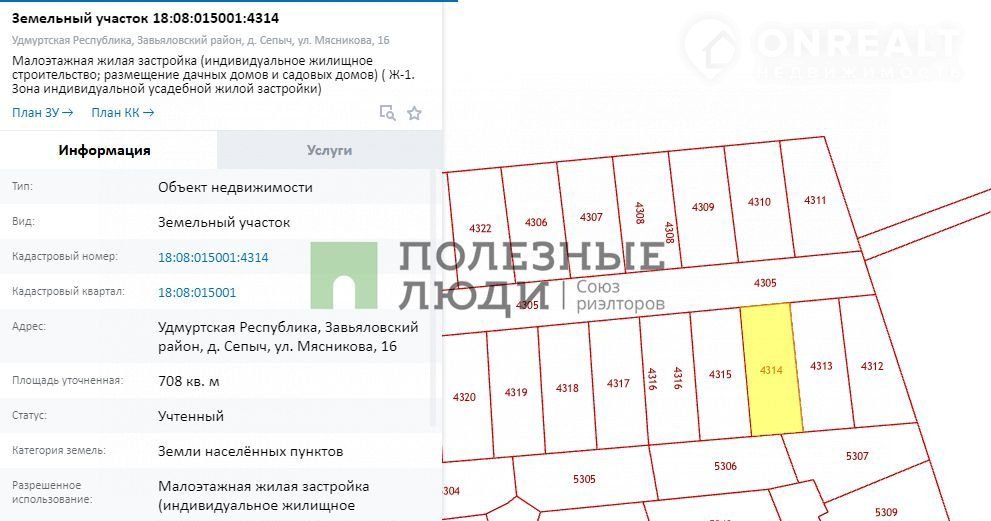 Кадастровый номер участка: 18:08:015001:4314