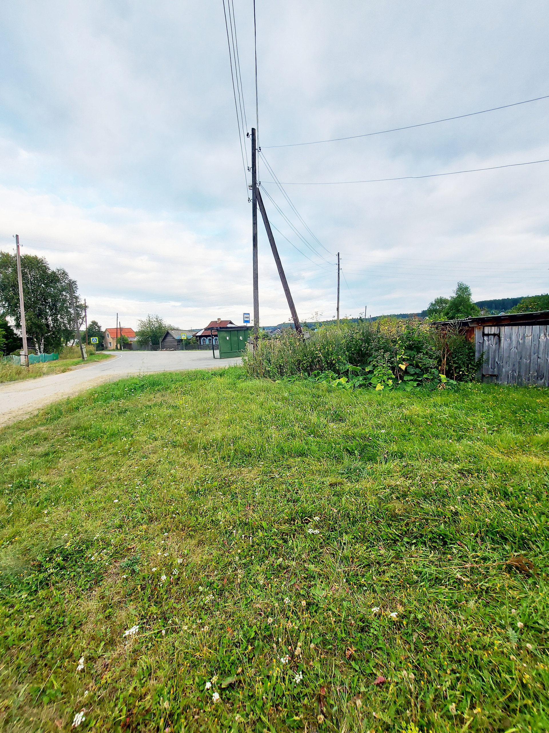 Дорога асфальтирована, рядом автобусная остановка
