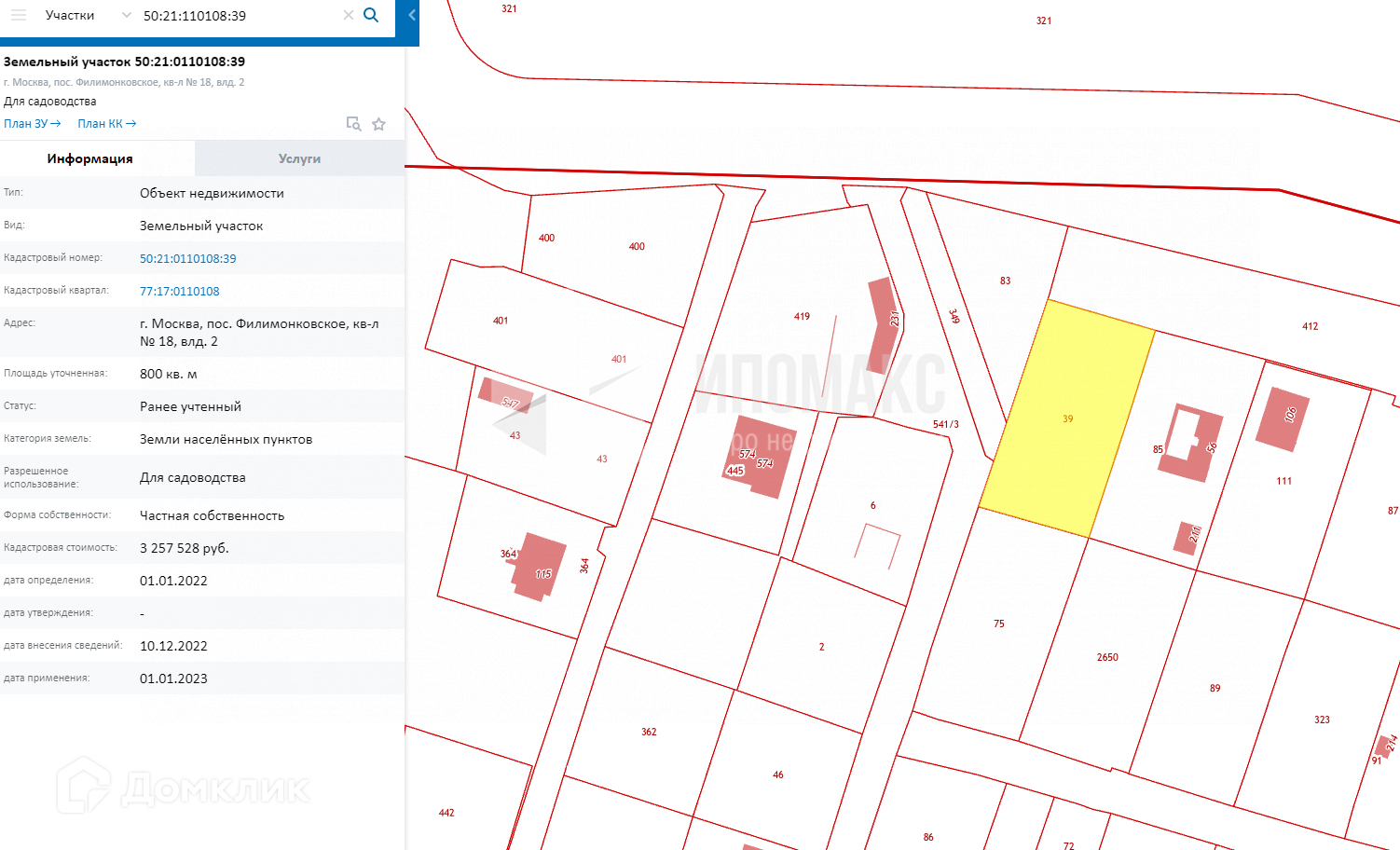 Кадастровый номер: 50:21:0110108:39