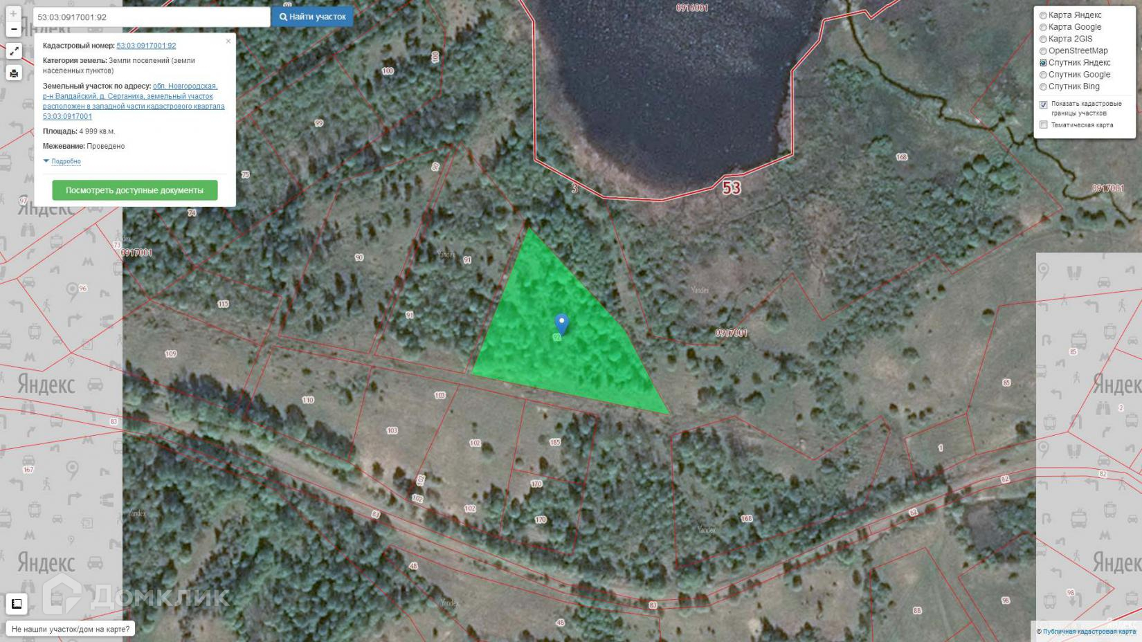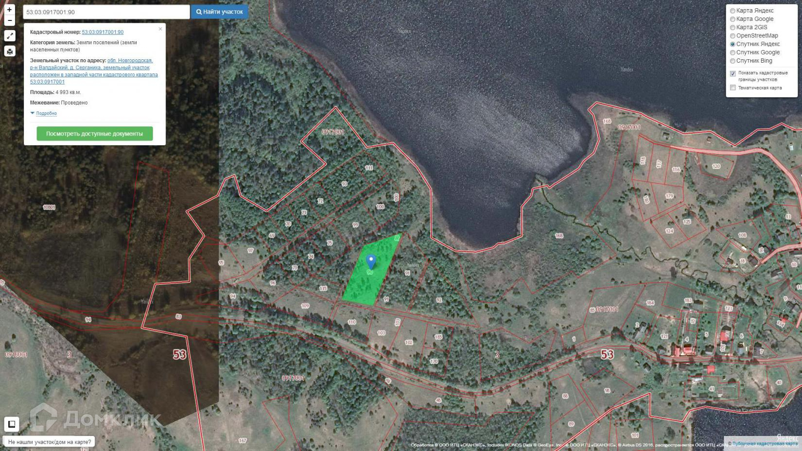 Новгородская область, Валдайский район, деревня Серганиха: два земельных участка по 50 соток, категория земель: земли населенных пунктов, берег озера. Кадастровые номера 53:03:0917001:90, 53:03:0917001:92. Цена  450 тыс.руб