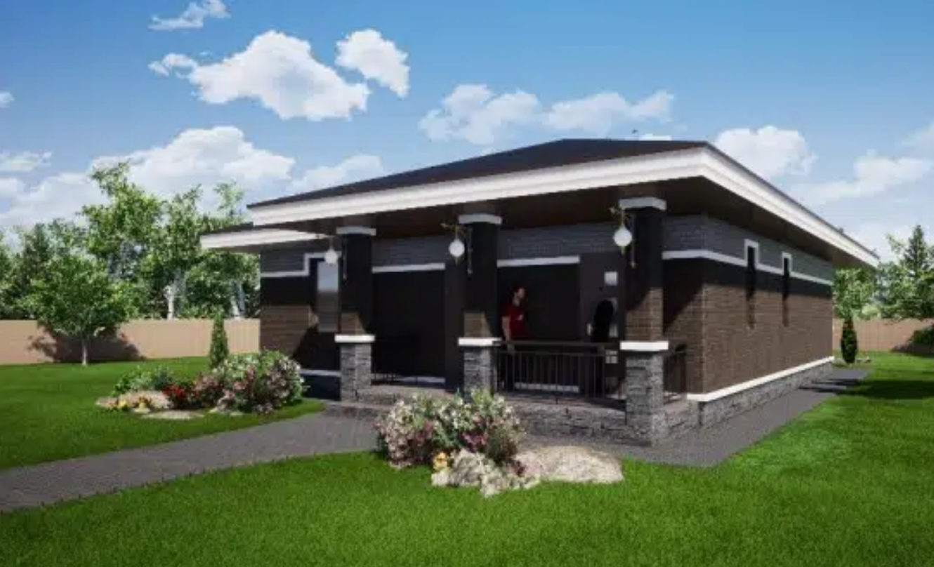 Кровля вальмовая из мягкой черепицы;
