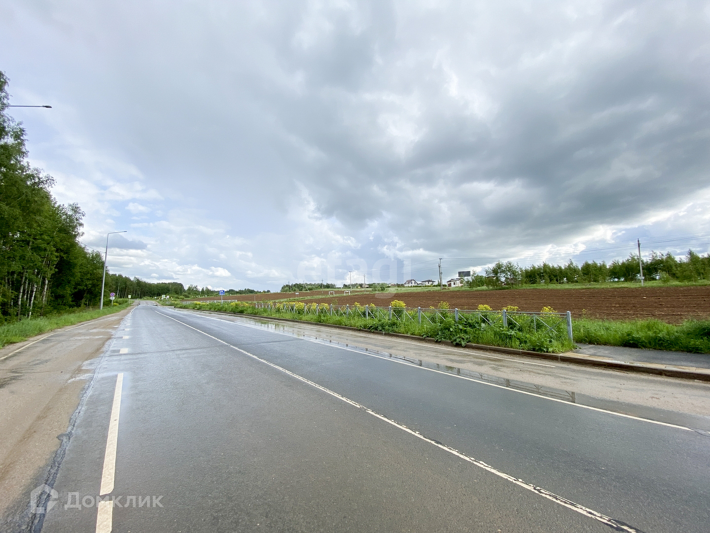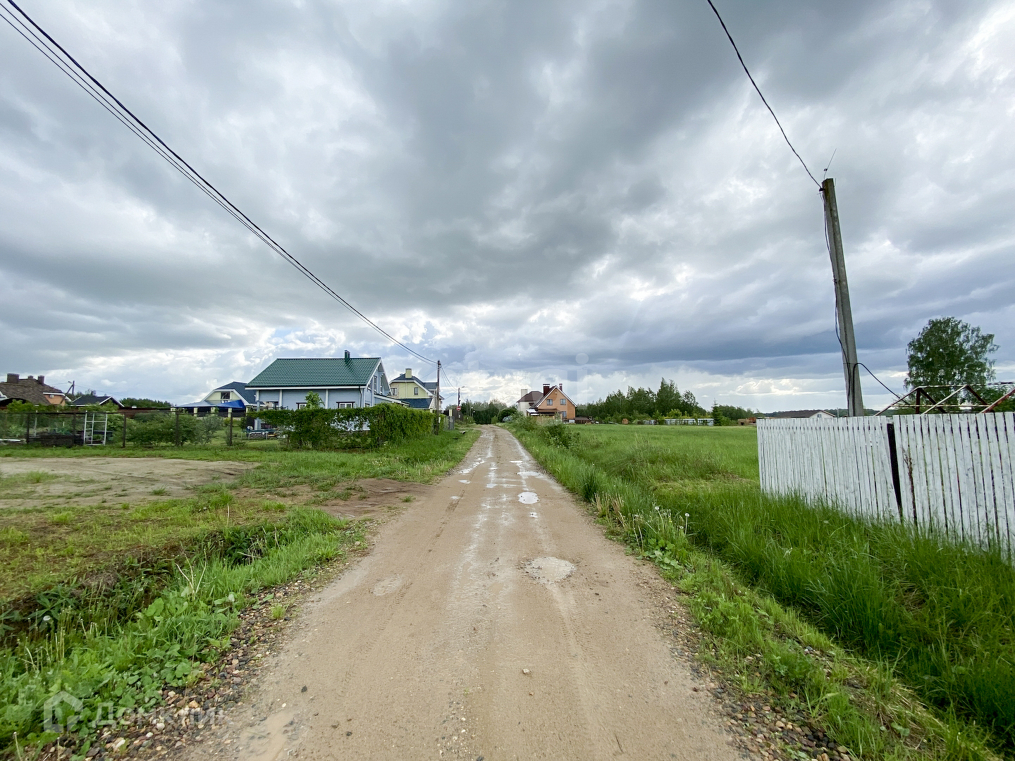 Участок правильной прямоугольной формы. Находится почти на въезде в кот. поселок. Имеет небольшой уклон.