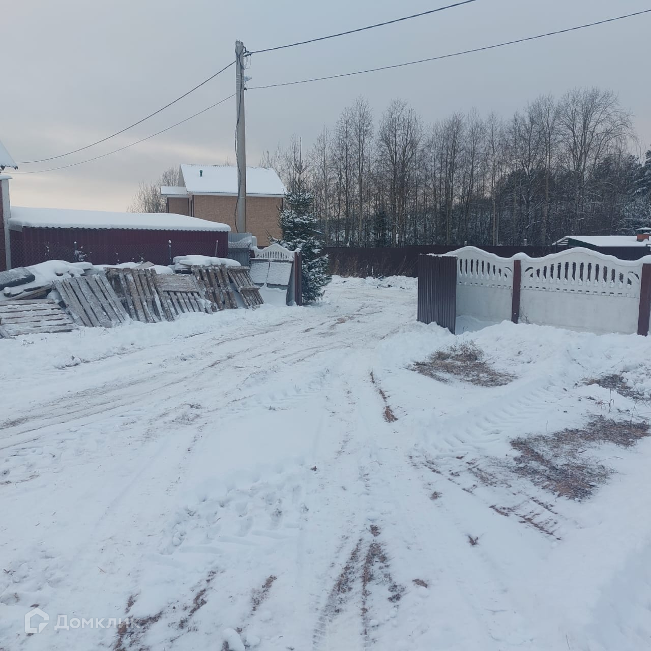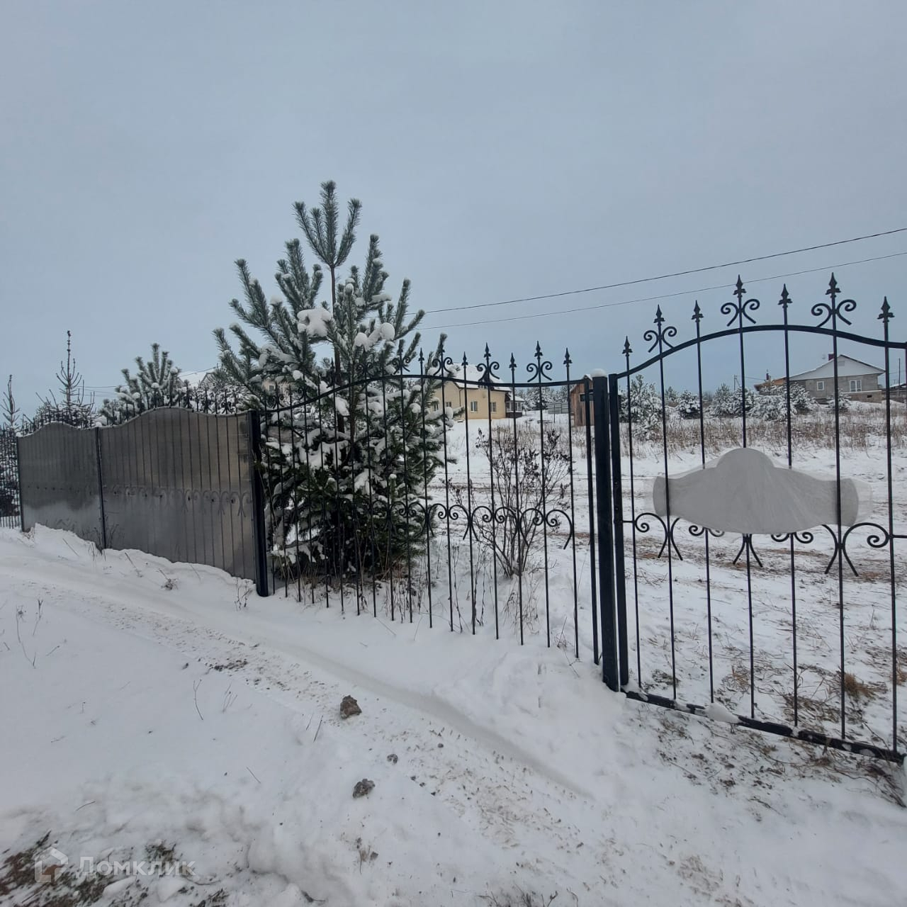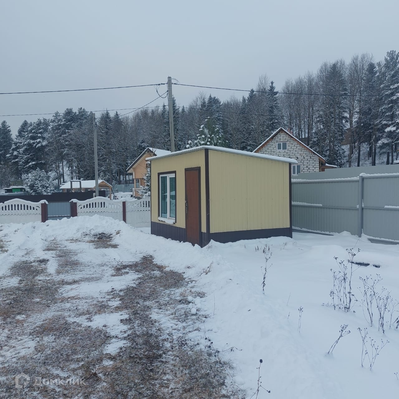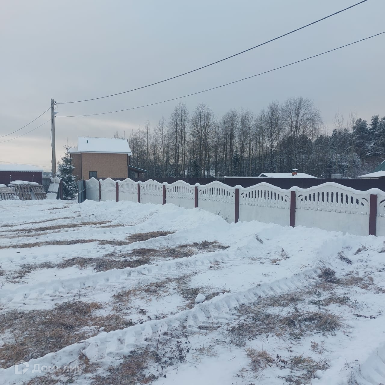 Участок огорожен забором .