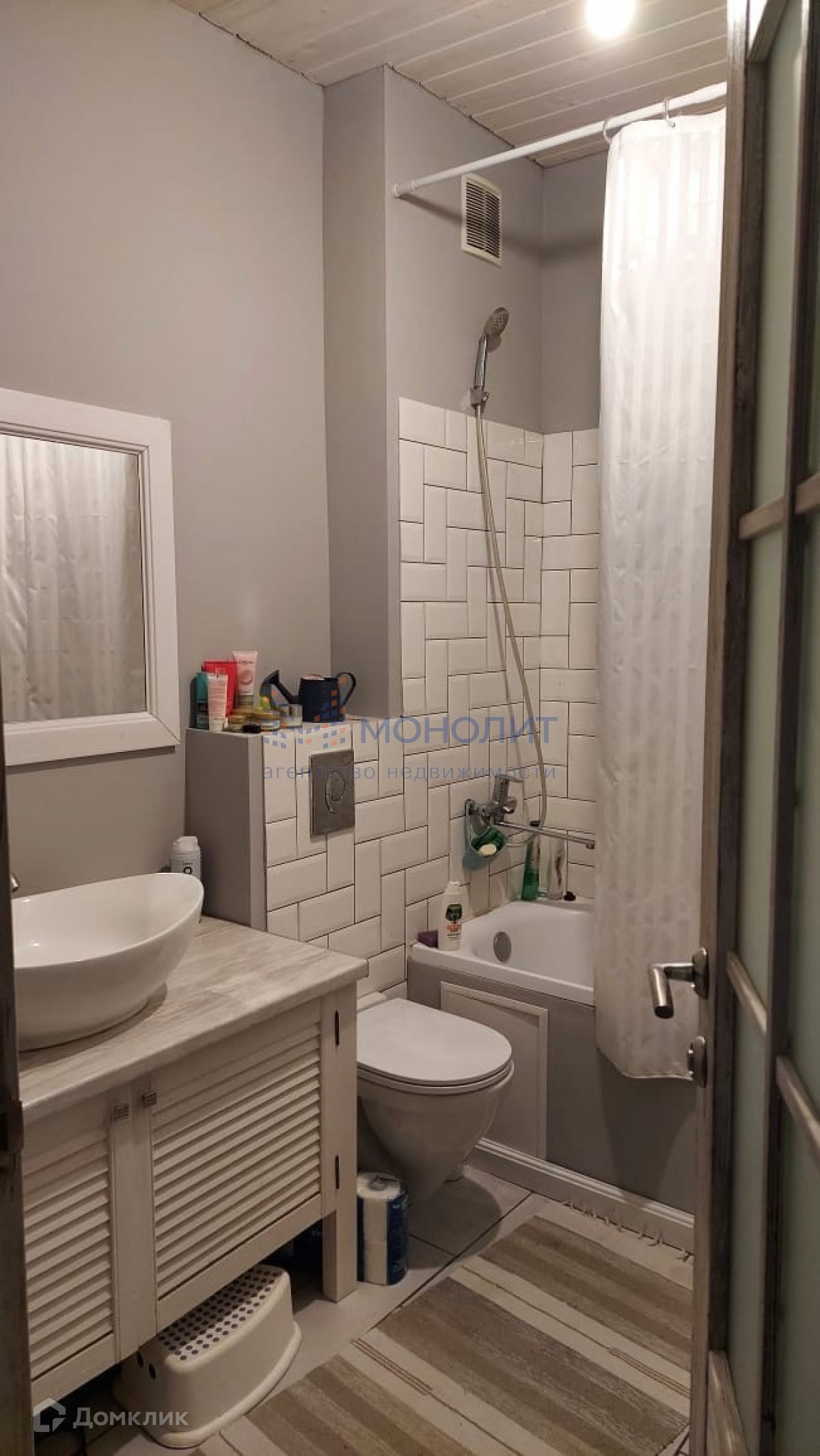 два санузла первый этаж : акриловая ванна, инсталляция, раковина с тумбой и второй этаж: душ, унитаз, раковина, пол керамогранит.