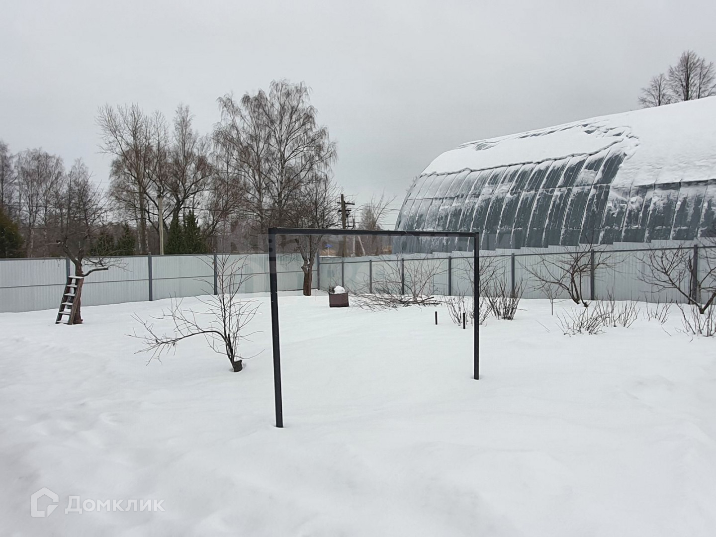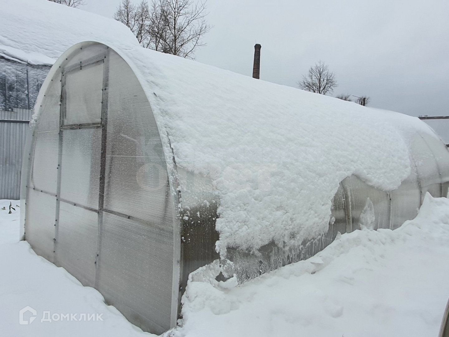На участке стоят две теплицы, растут плодовые деревья: яблоня, груша, слива, черешня и вишня.