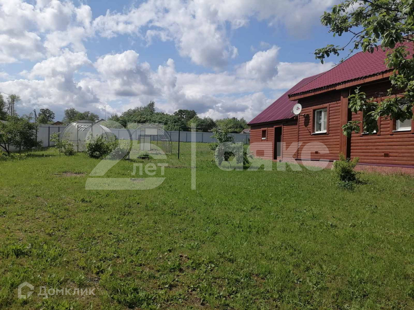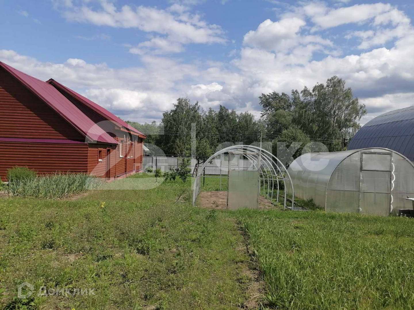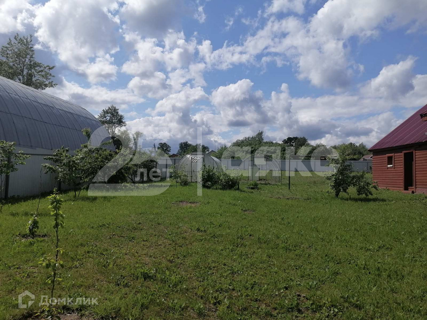 На участке стоят две теплицы, растут плодовые деревья: яблоня, груша, слива, черешня и вишня.