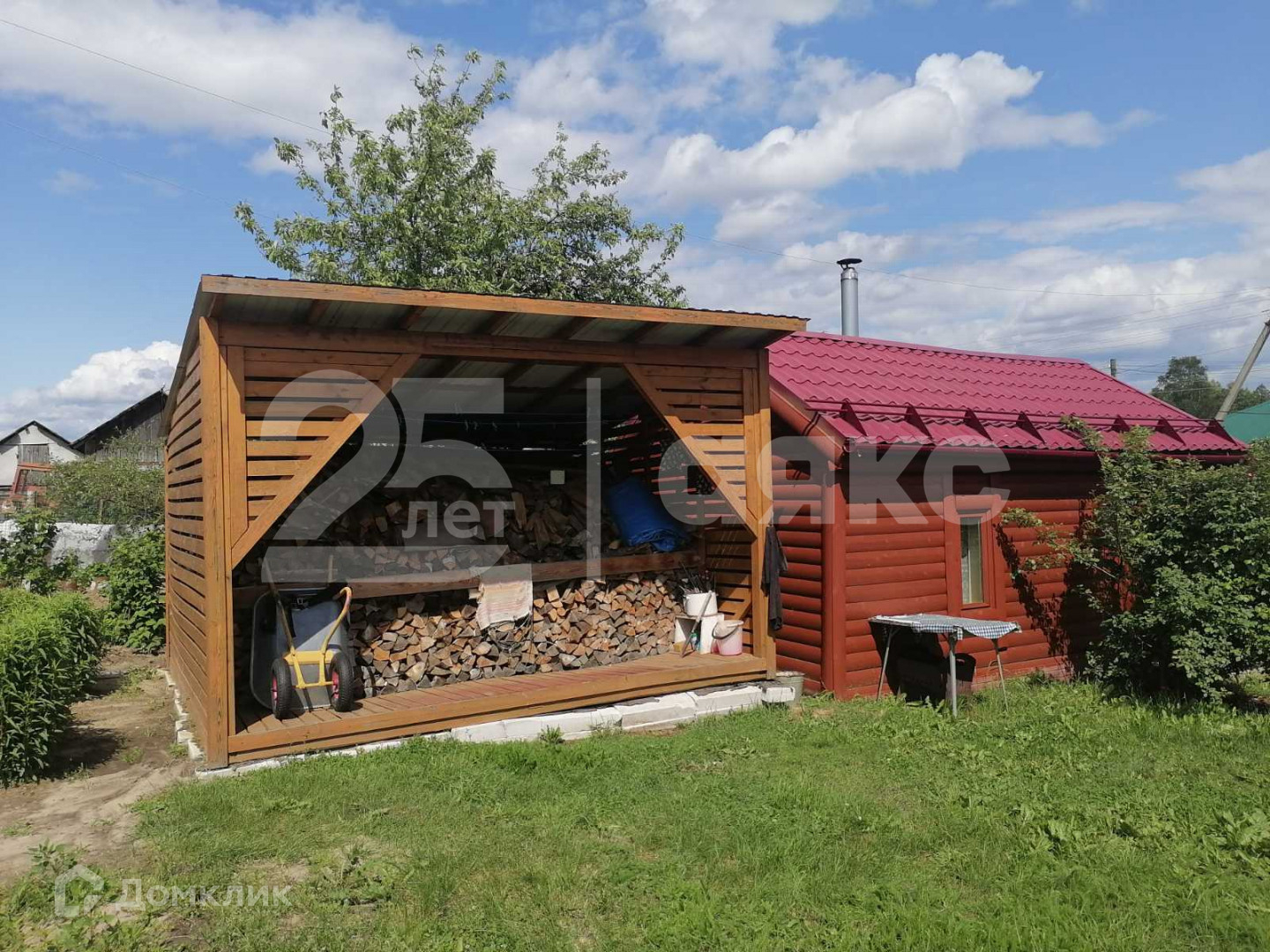 Рядом с домом на участке баня из цельного бревна(сосна) и отдельно домик из цельного бревна летняя кухня.