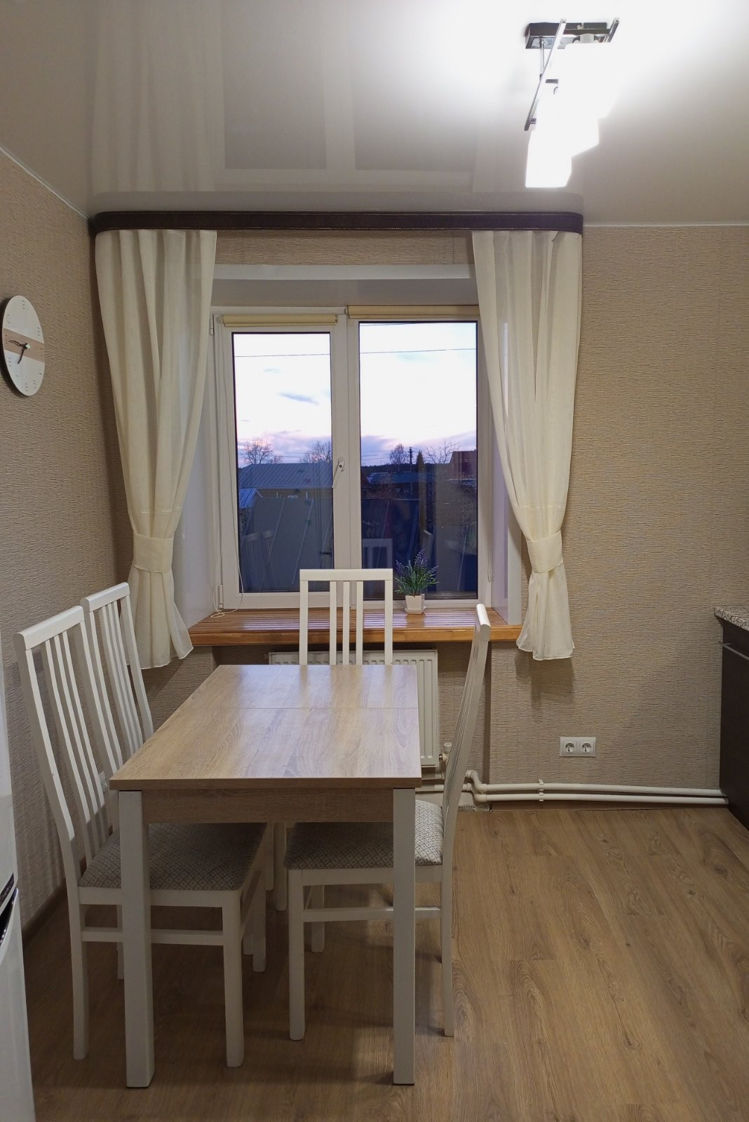 Сделан ремонт, заменена вся проводка , и сантехника, пол ламинат, окна ПВХ, натяжные потолки везде, индивидуальное отопление ,,двухконтурный котел,,. Сан узел в кафеле, в подъезде сделан ремонт 2022 год. В деревне есть школа, дет сад. Больница , магазины, дом культуры, аптека,до Владимира 50 км, камешково 16, суздаль 20.