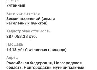 Продам участок 15 соток. Оформлен для ведения личного подсобного хозяйства. Асфальтная дорога почти до границы участка, Электричество по границе участка, газ рядом. Кадастровый номер 53:11:1800203:0085 |