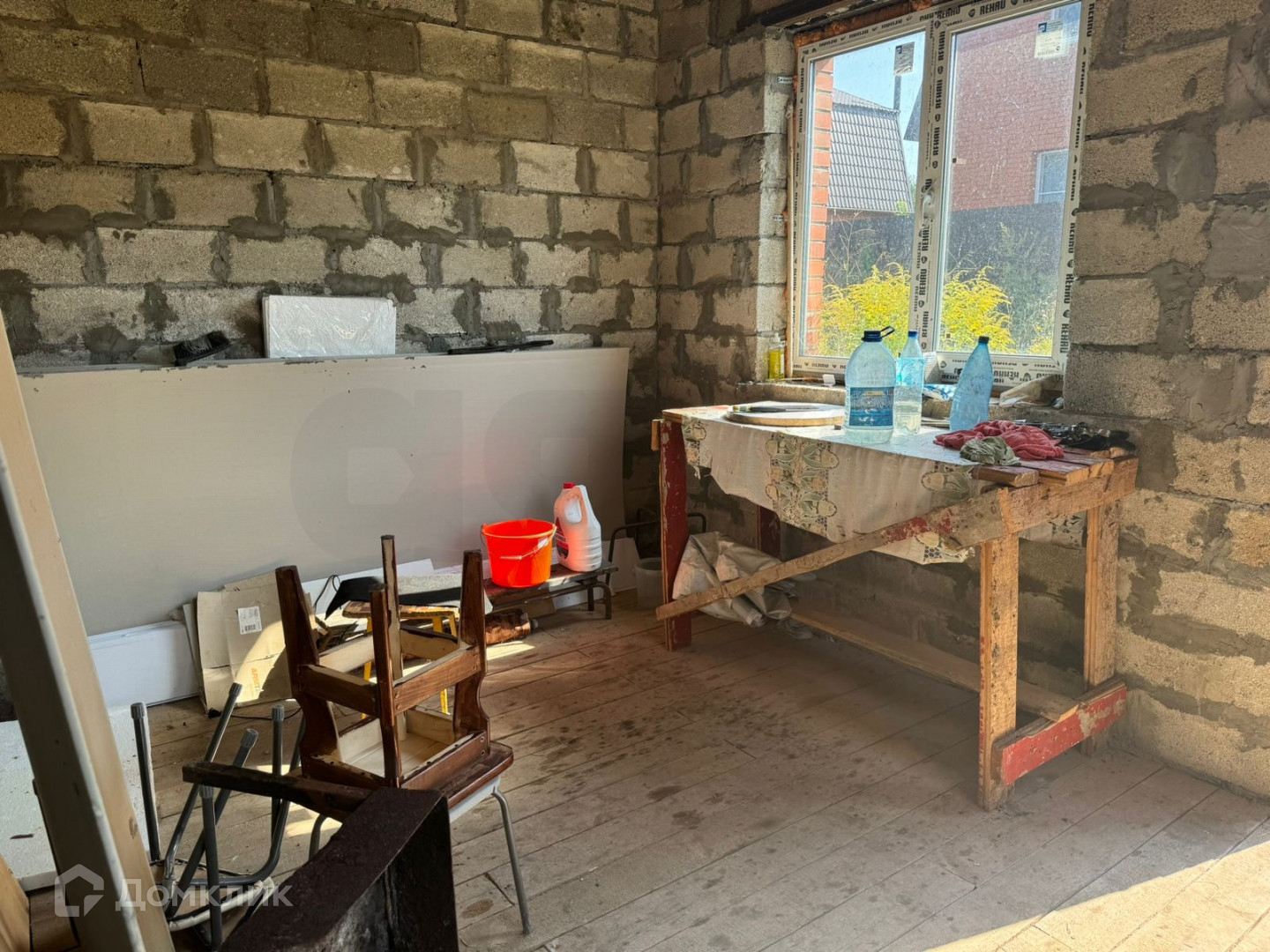 Черновая отделка дома, позволяет воплотить любые дизайнерские идеи и решения. Коммуникации на участке газ до конца 2024г., свет (счетчик) вода (скважина). Все можно подвести в дом (проекты на исполнении).