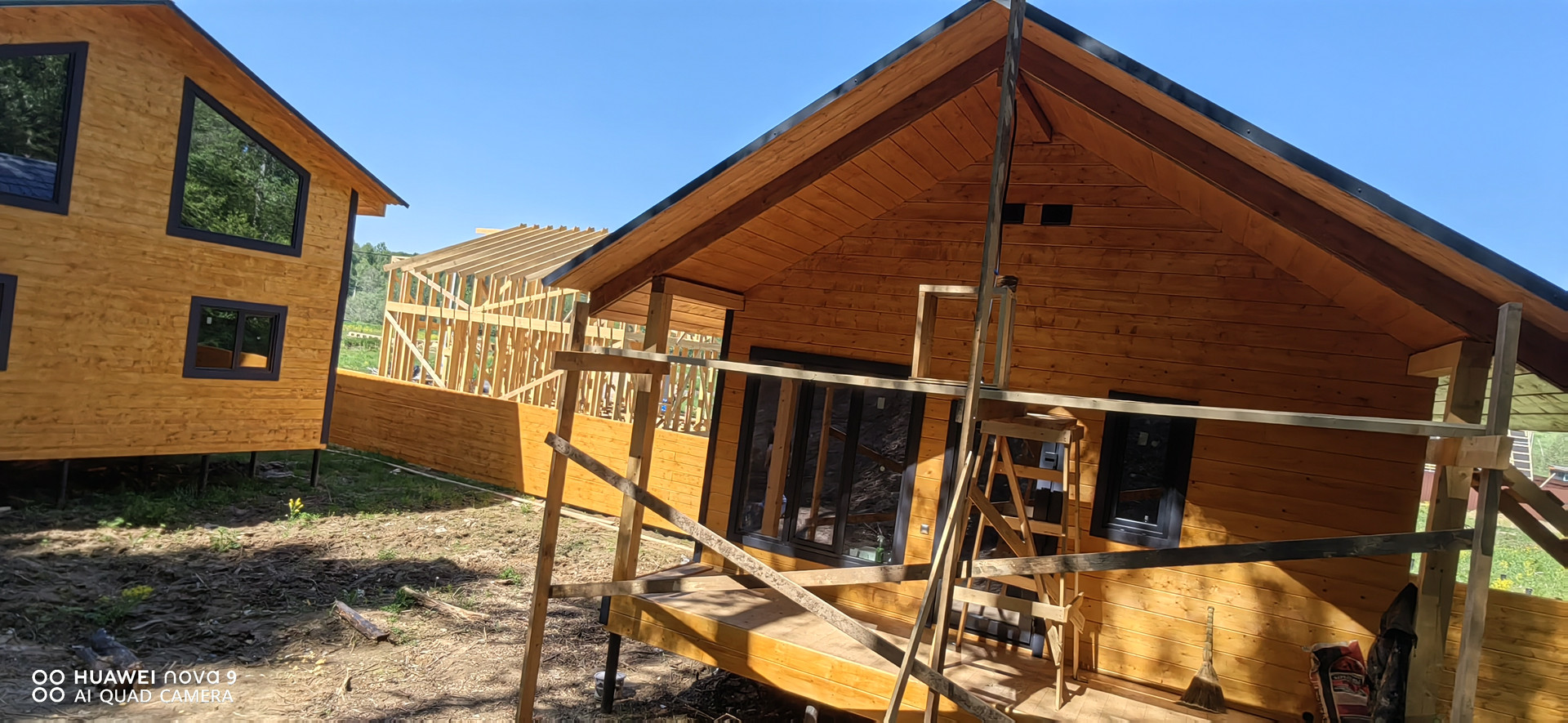 В доме - электричество 15 КВт. эл. котёл, разведены батареи (антифриз), панорамные окна "Мелке".