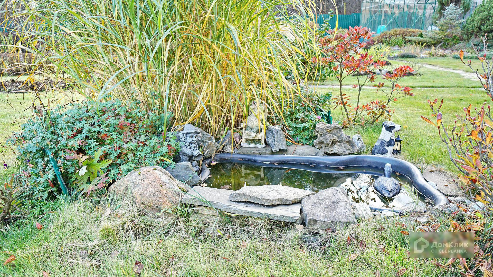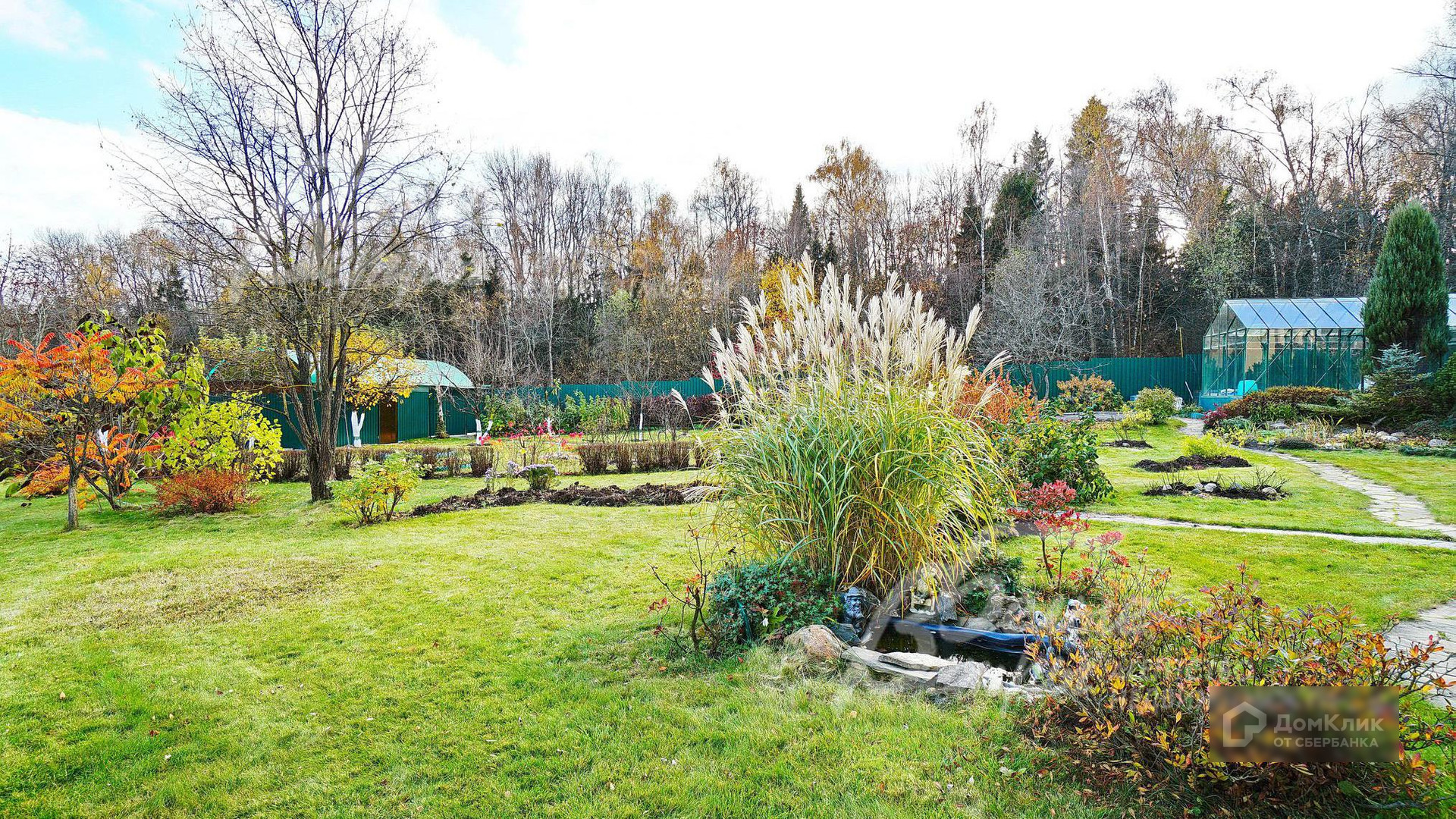 Благоустройство участка: проведен профессиональный ландшафтный дизайн: организован газон, много цветов, деревья, каменные горки; сделаны дорожки, освещение территории, система полива.
