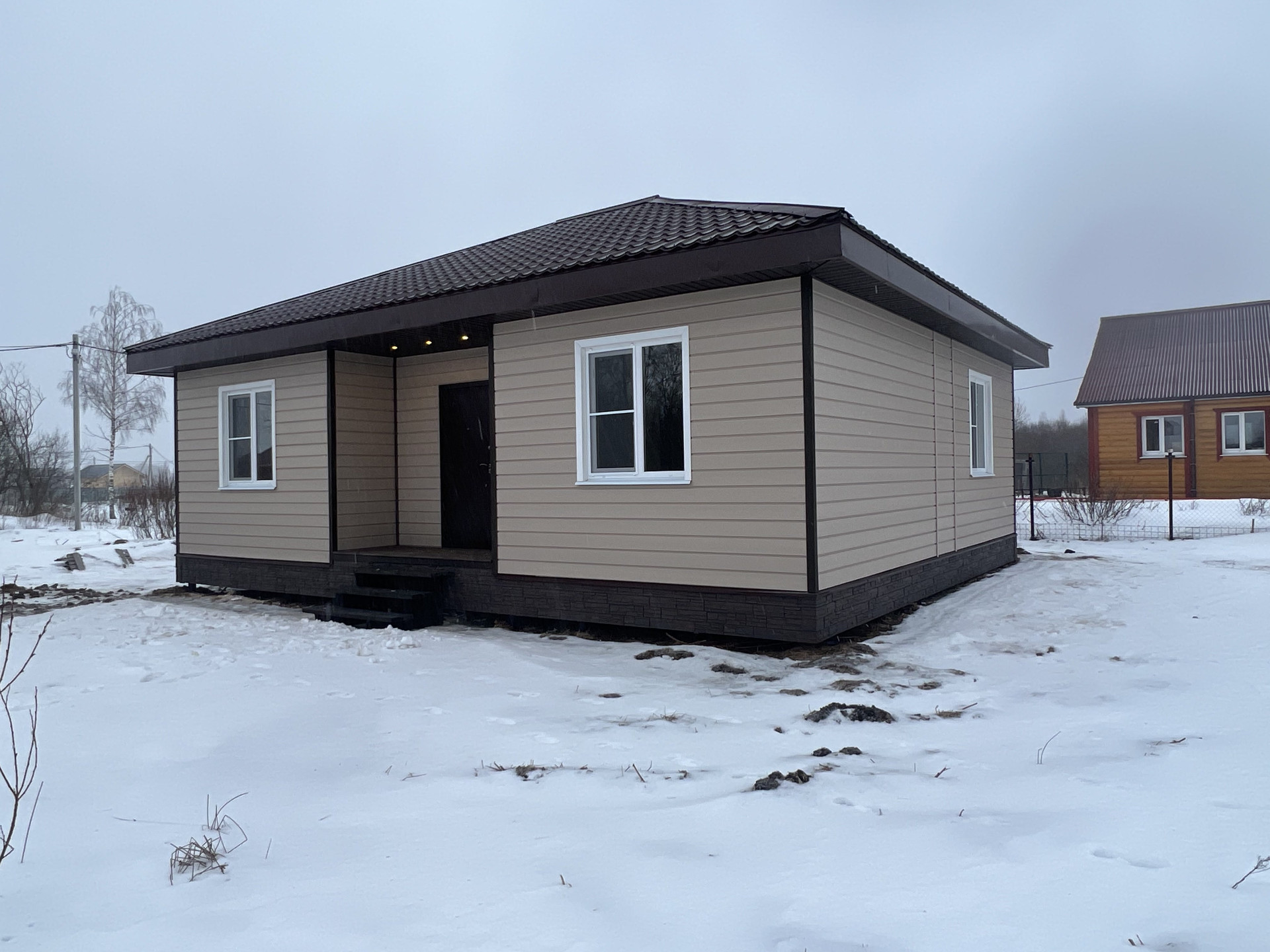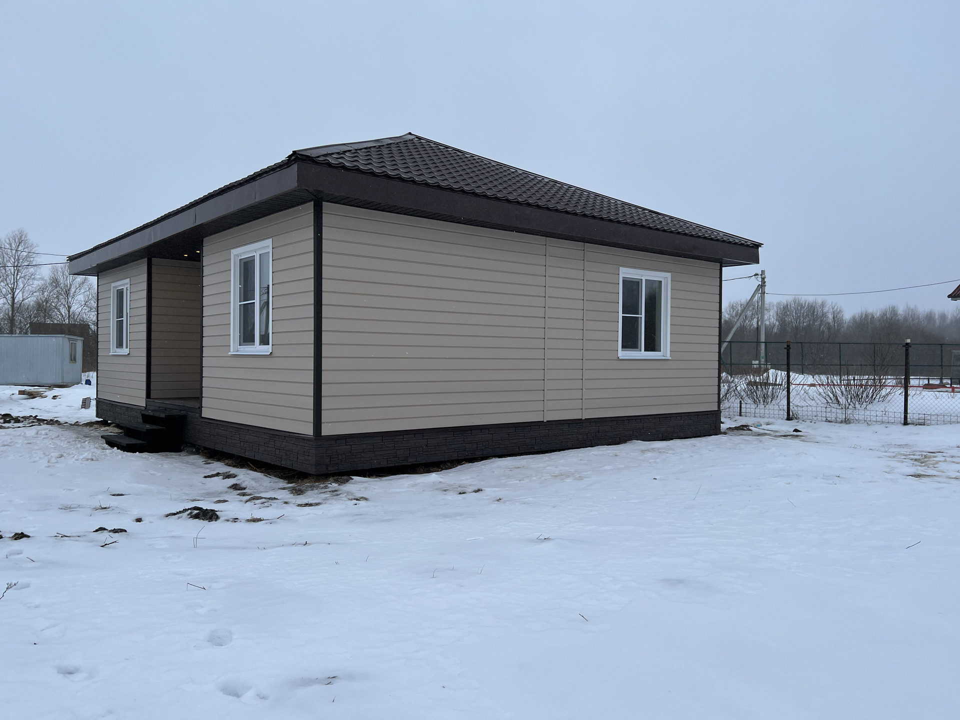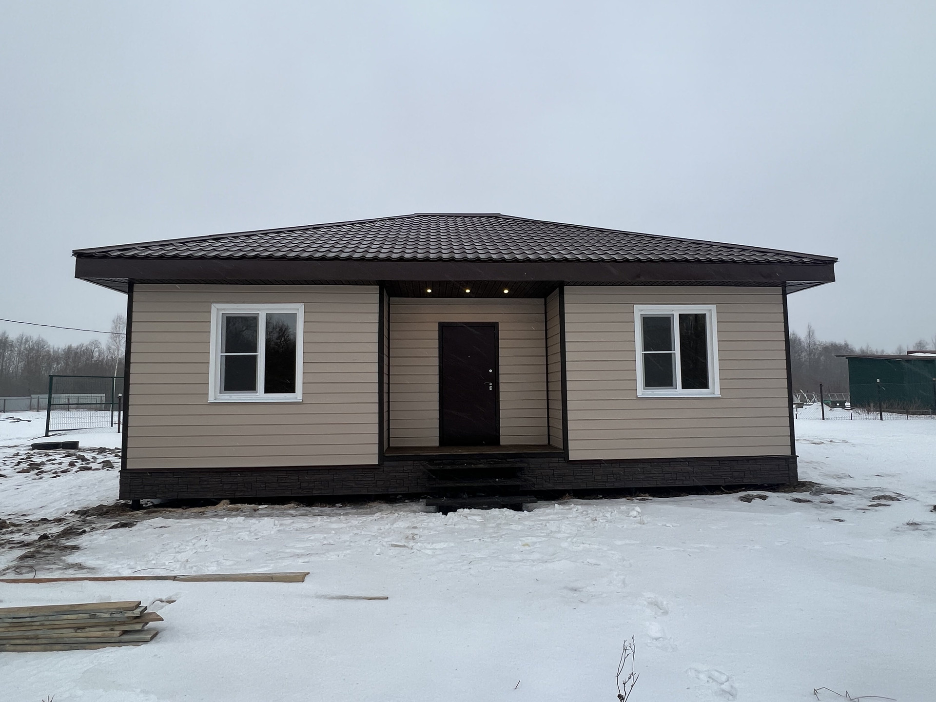 Внутри чистовая отделка, ламинат 33 класс, натяжные потолки, электрика разведена, розетки, светильники. Можно сразу переехать и жить, прямо как в квартире только лучше!