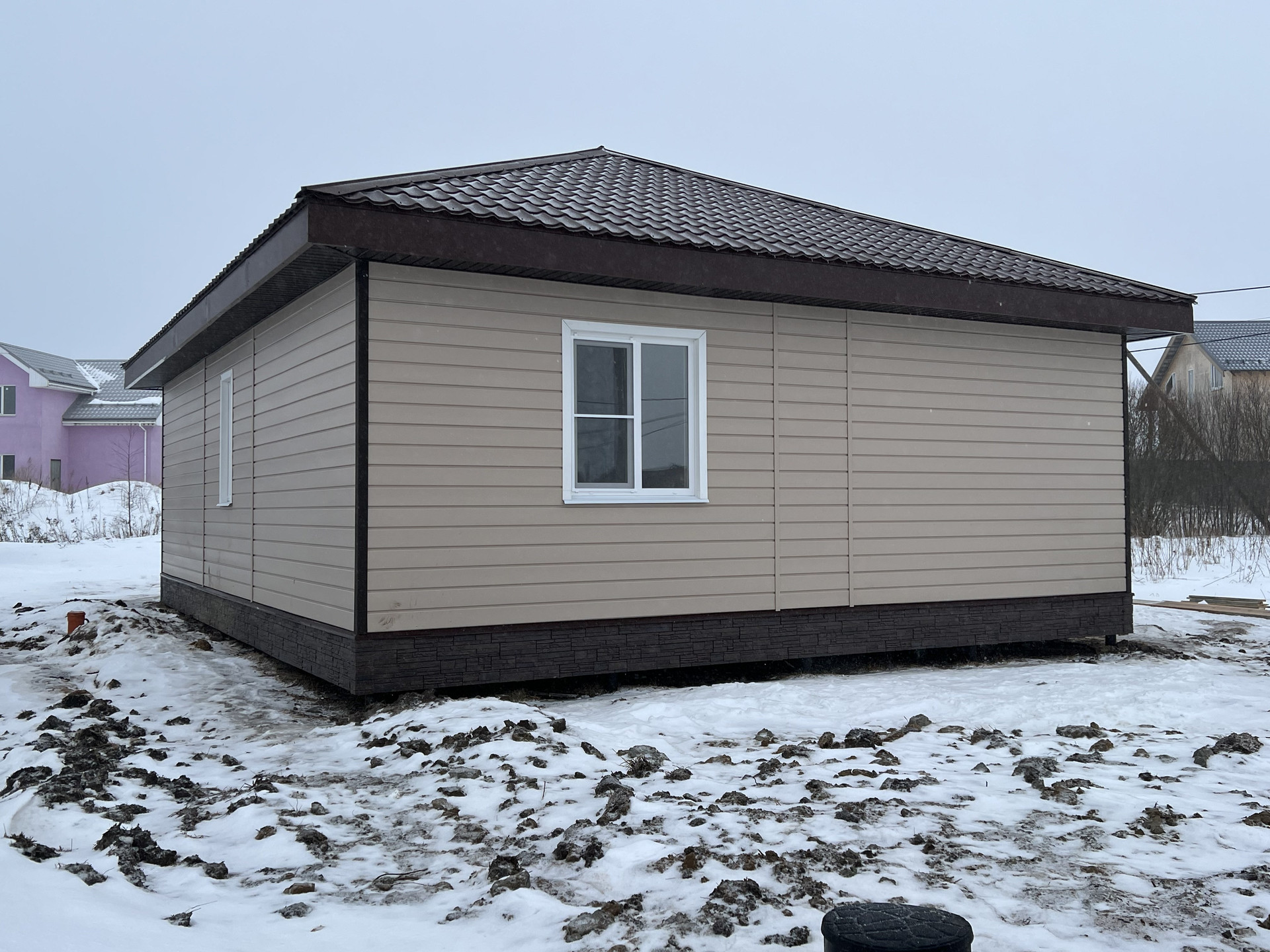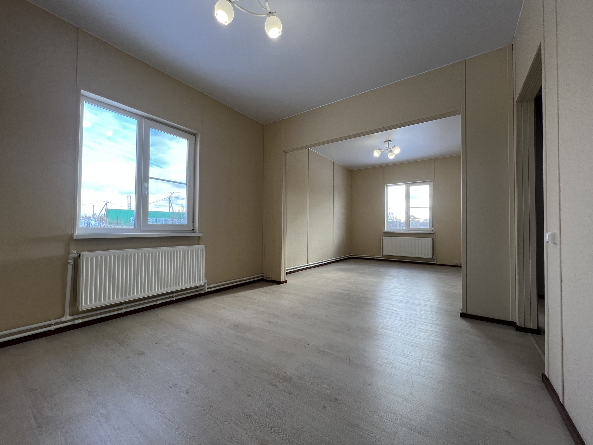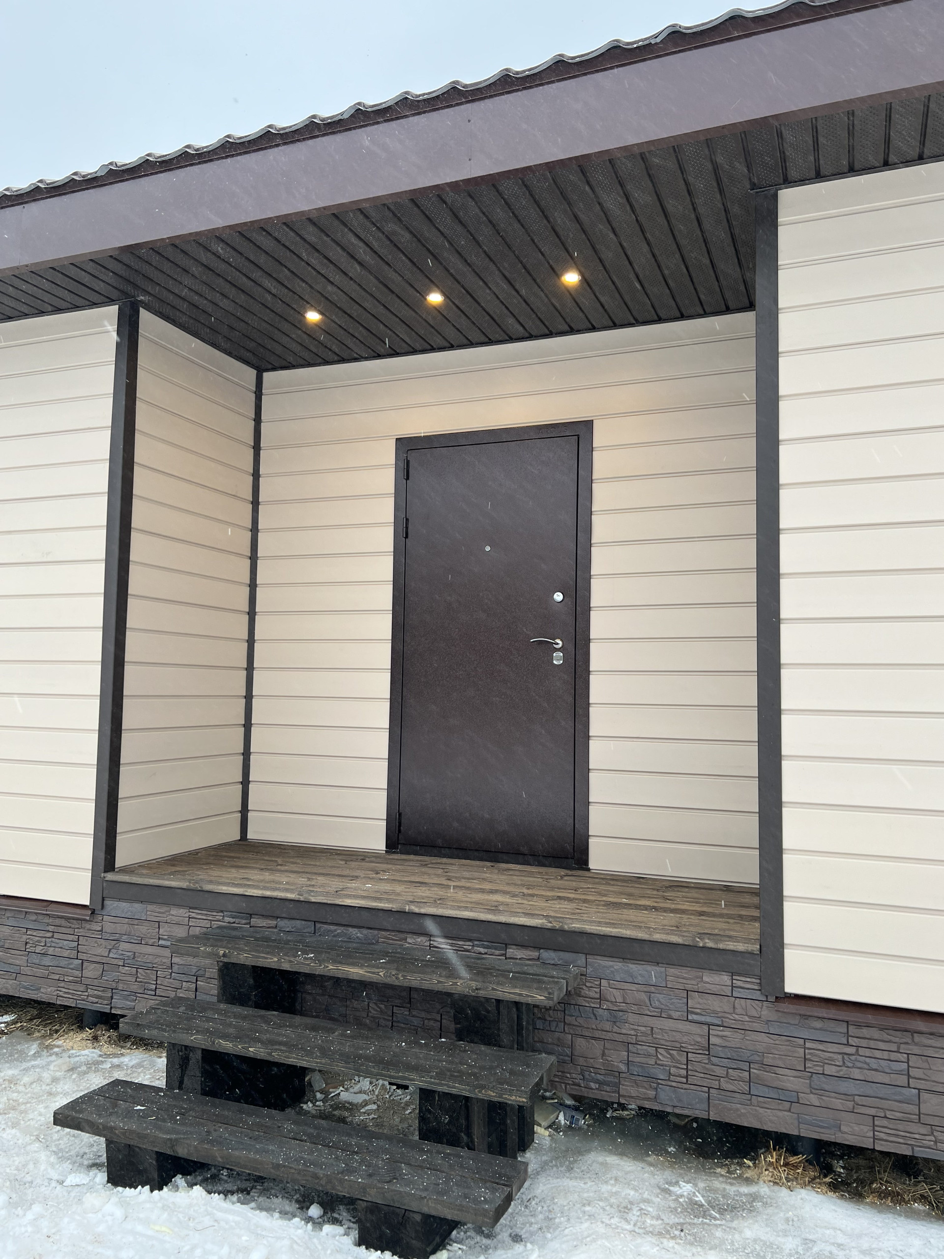 Внутри чистовая отделка, ламинат 33 класс, натяжные потолки, электрика разведена, розетки, светильники. Можно сразу переехать и жить, прямо как в квартире только лучше!