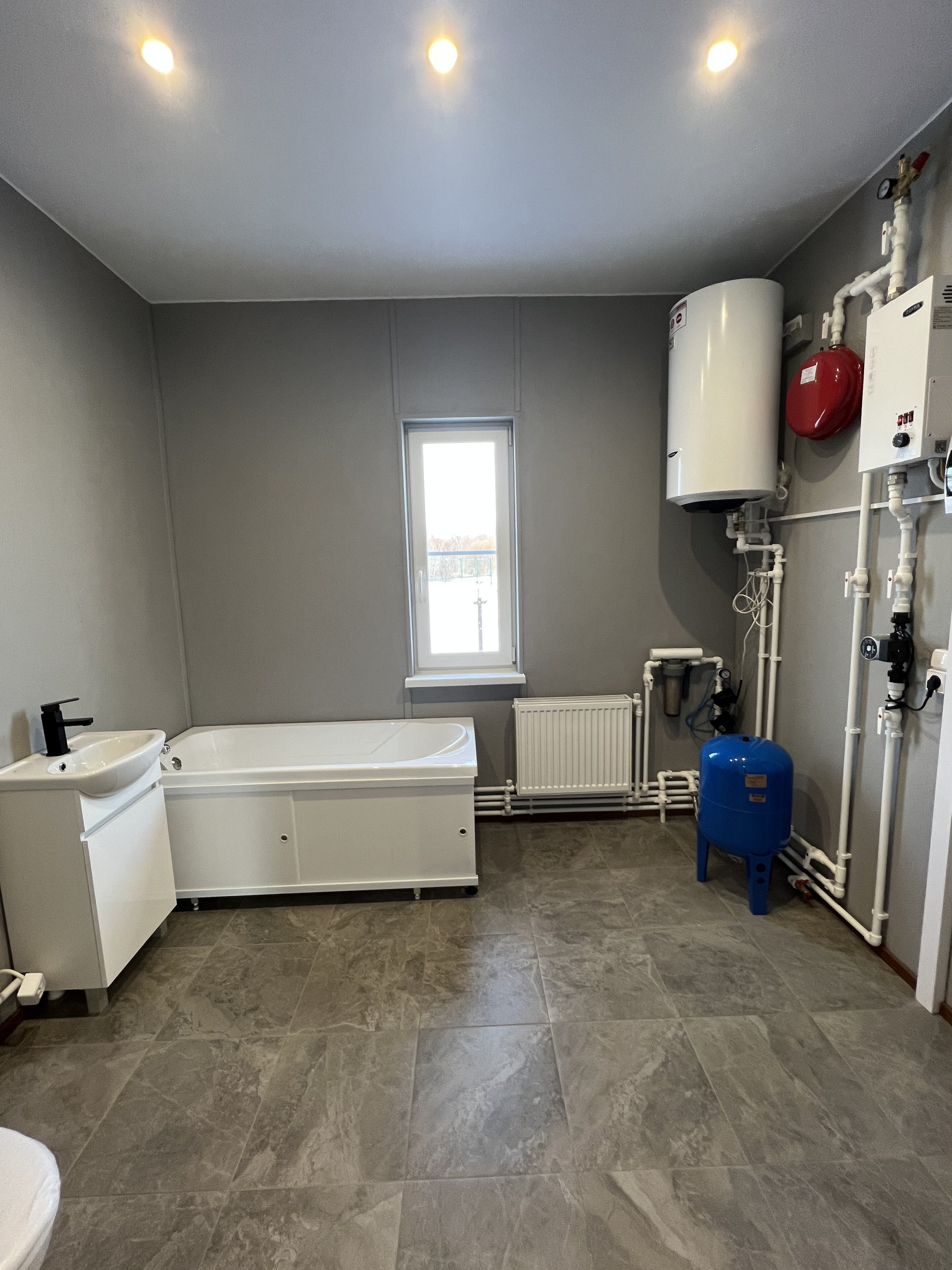 ОТОПЛЕНИЕ- электрокотёл, стальные радиаторы, всё уже запущено и работает.
