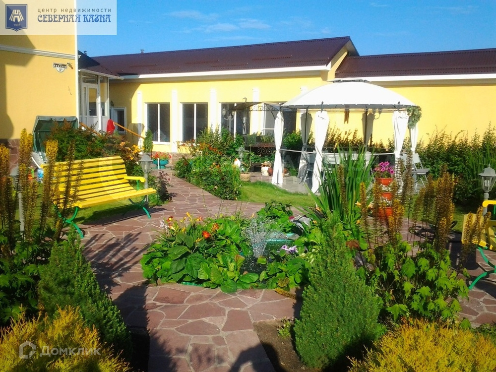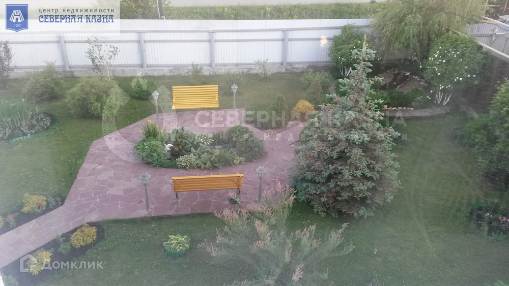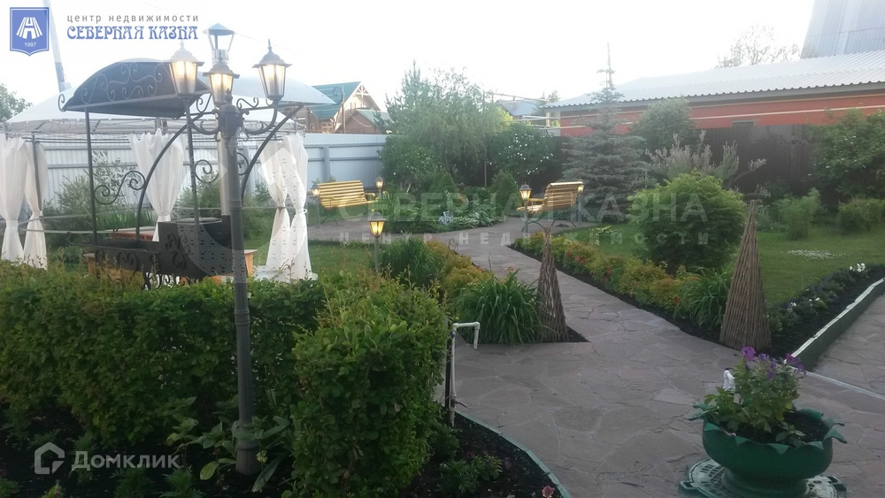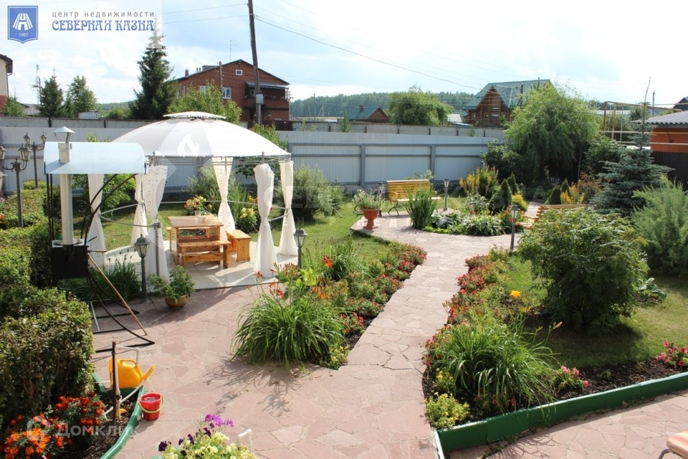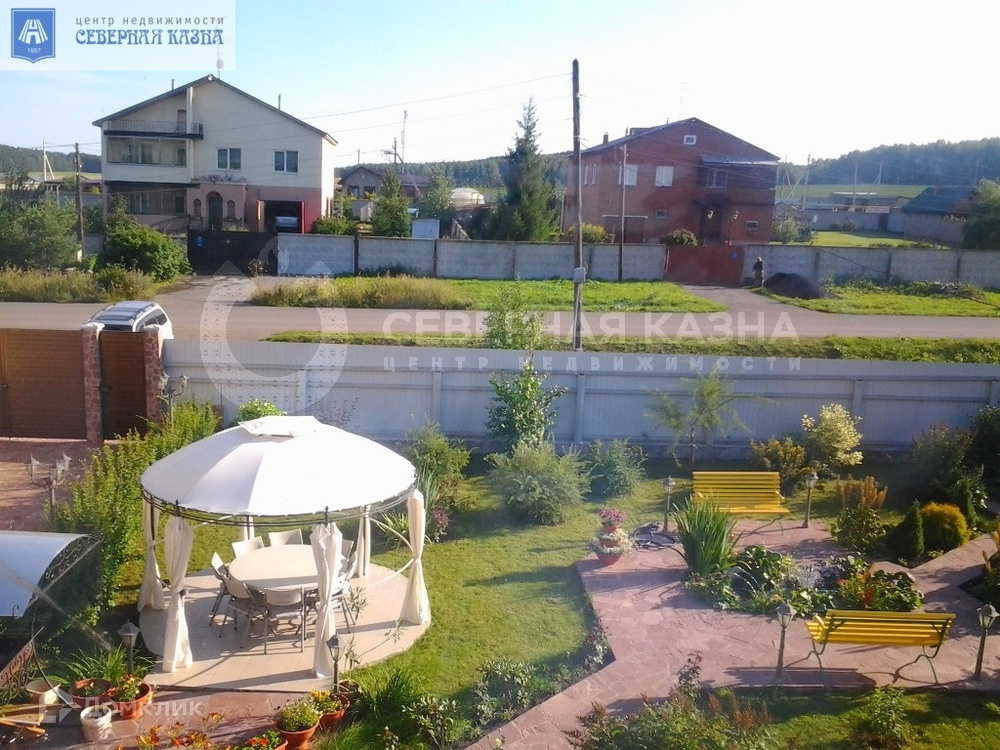 Усадьба расположена на земельном участке площадью 18 соток, включает в себя трехэтажный дом, просторную баню с плавательным бассейном, гараж на два автомобиля. Ухоженный участок с ландшафтным дизайном, беседкой и зоной барбекю. На участке произрастают голубые ели, березы, плодовые деревья, множество цветов и многолетний газон. Установлена система автоматического полива.