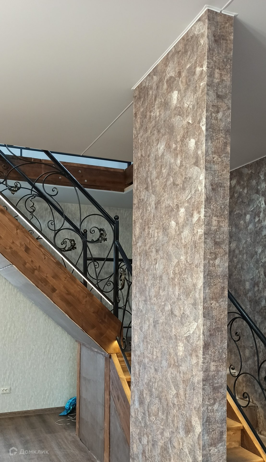 В доме две отдельные спальни, гостиная, просторная кухня-столовая, вместительная зона прихожей и котельной, 2 санузла, ванная комната, кабинет, спорт зал. Этажи между собой соединяет декоративная кованная металлическая лестница.