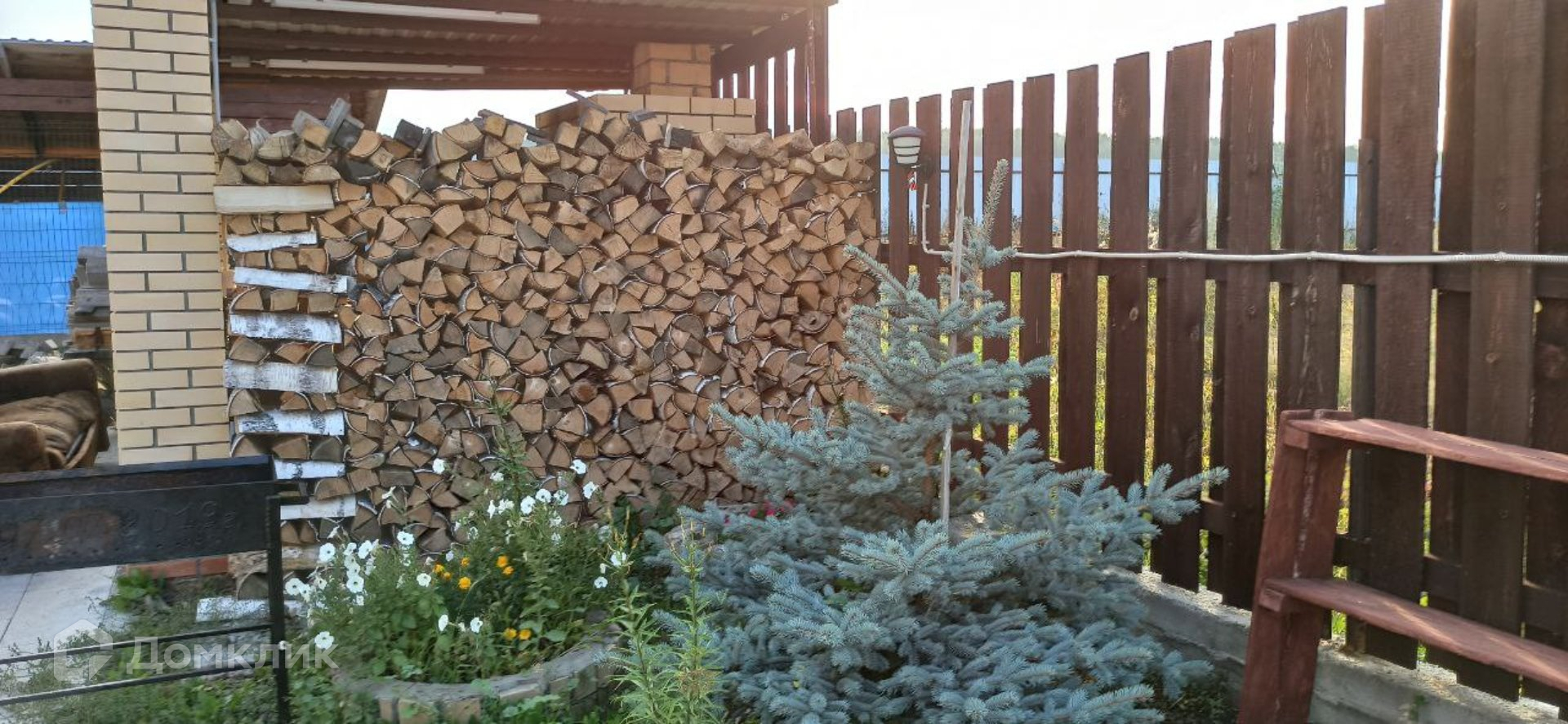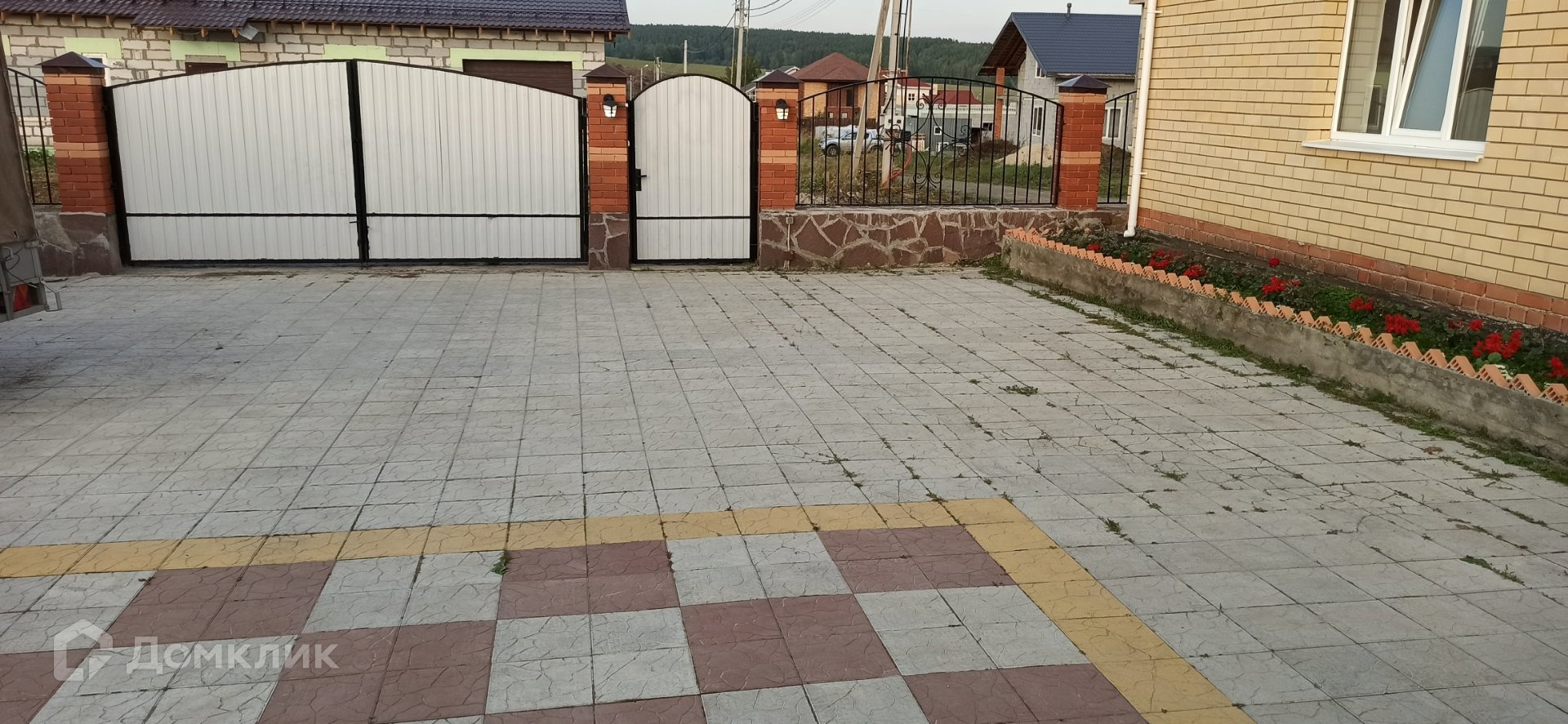 Ухоженная территория по всему периметру участка: двор у дома из плитки, газон, цветочные насаждения грядки под овощи и ягоды, плодовые деревья и кустарники.