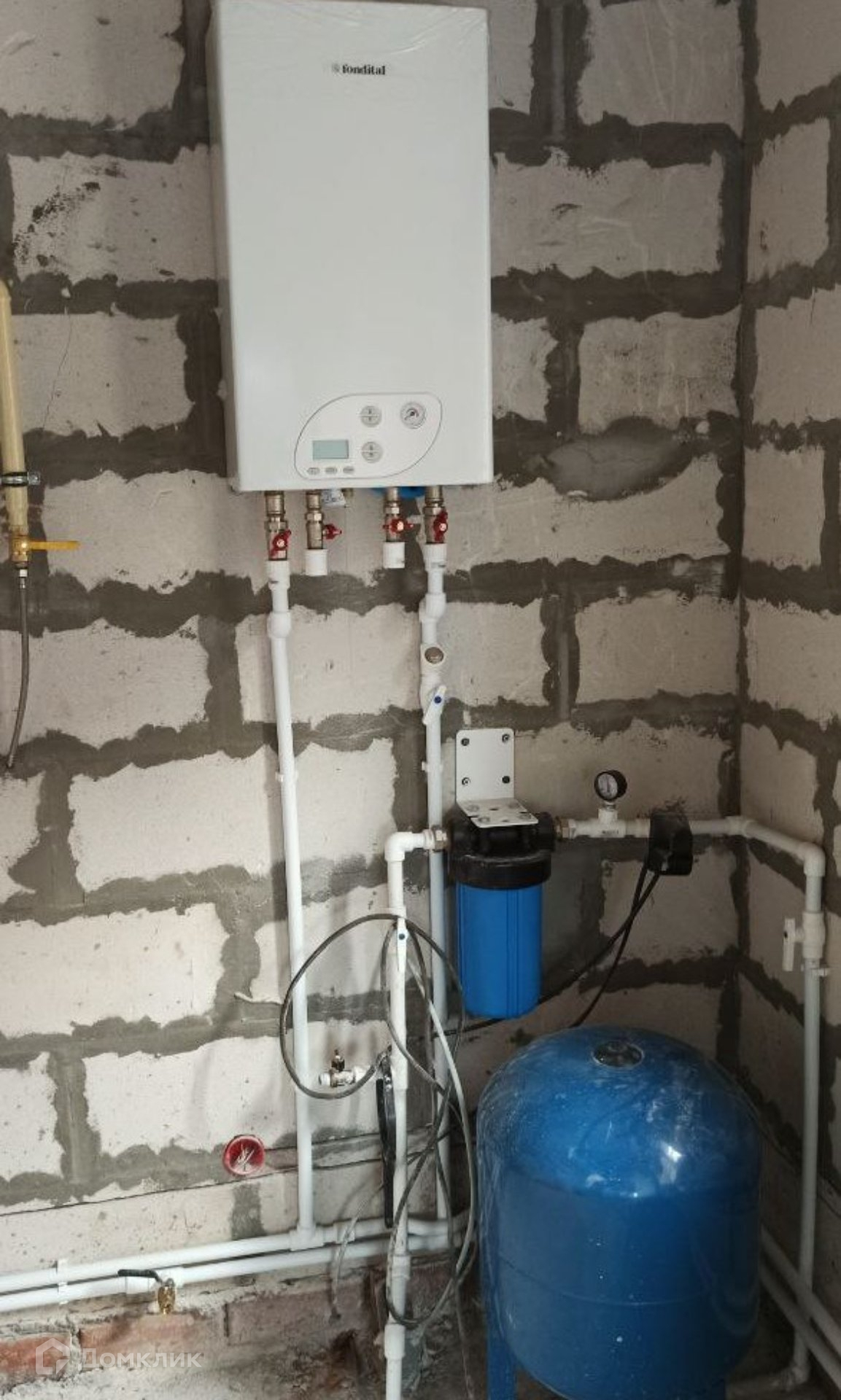 Дом выстроен из твин блоков на 300 мм ,100 мм утеплитель и облицовочный кирпич. Фундамент ленточный, сваи заливные, подвала нет. Крыша шатровая из металлочерепицы, потолки утеплены, чердак не жилой. Перегородки из деревянного бруса. Потолки натяжные и деревянные. Окна-пластиковые стеклопакеты. Двери: входная -сейф дверь, межкомнатные -филенчатые двери. Все коммуникации заведены в дом и запущены в эксплуатацию: водоснабжение - скважина 60 метров глубиной, отопление - газовое тёплый пол по всему периметру первого этажа, радиаторы, канализация - перерабатывающая станция, разведено электричество. Степень готовности дома 95%(осталось выложить кафельную плитку в ванной комнате).