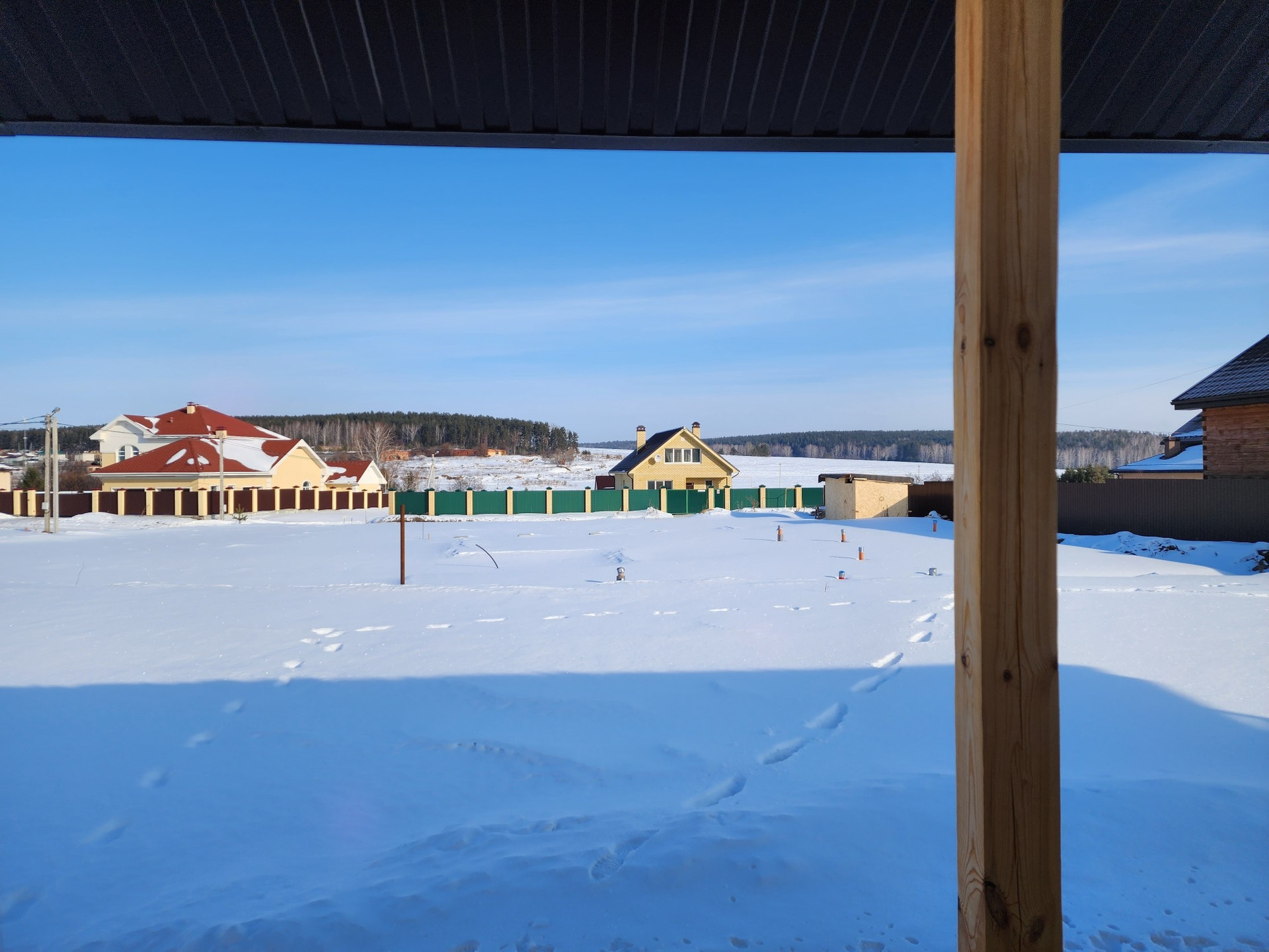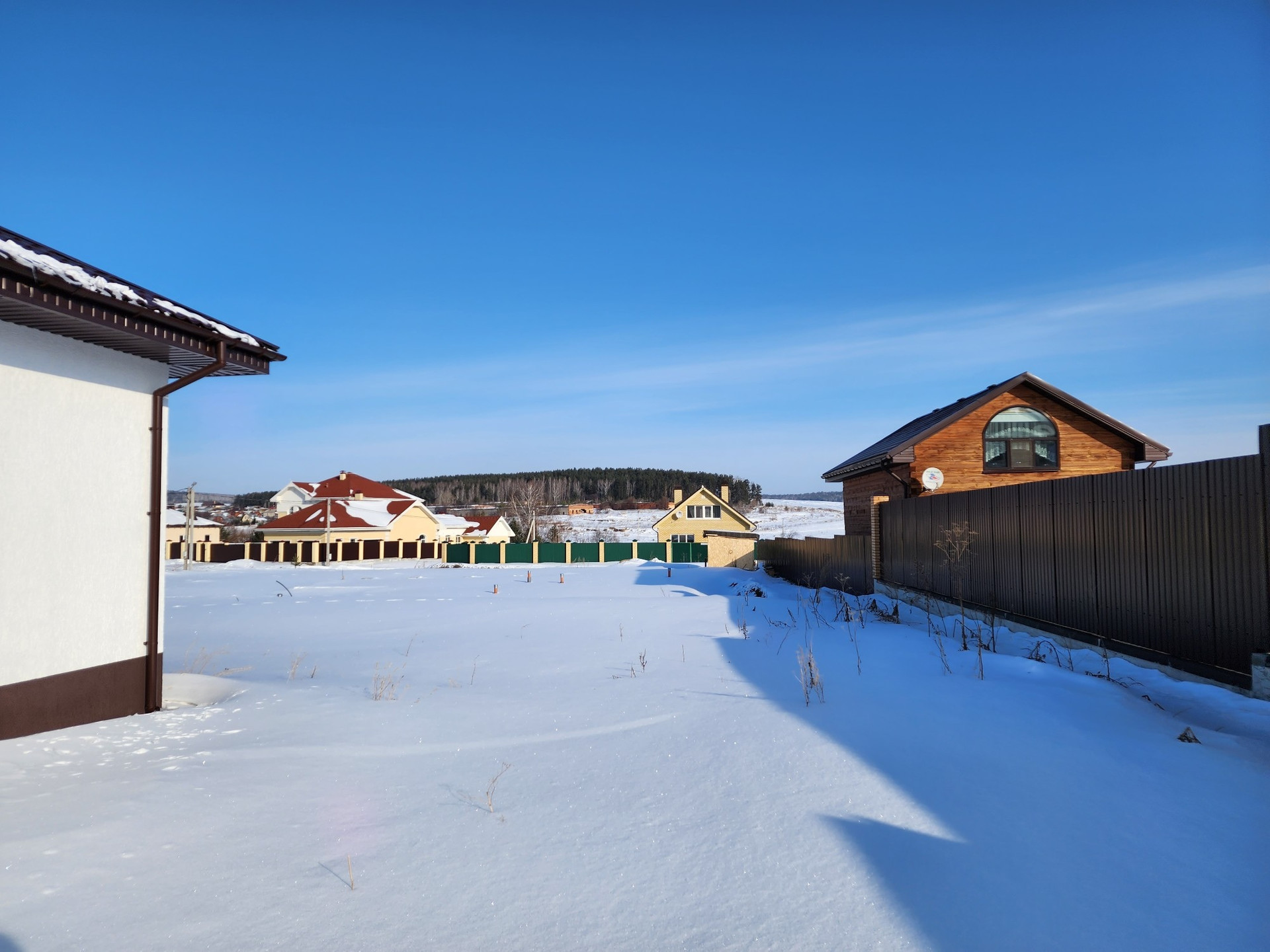 9 соток. Правильной формы, расположен в 100 метрах от леса. Подведены электричество 15кВт 380 Вт, газ. Рельеф спокойный, место сухое. Хорошая подъездная дорога, освещение улиц, шикарные панорамные виды.