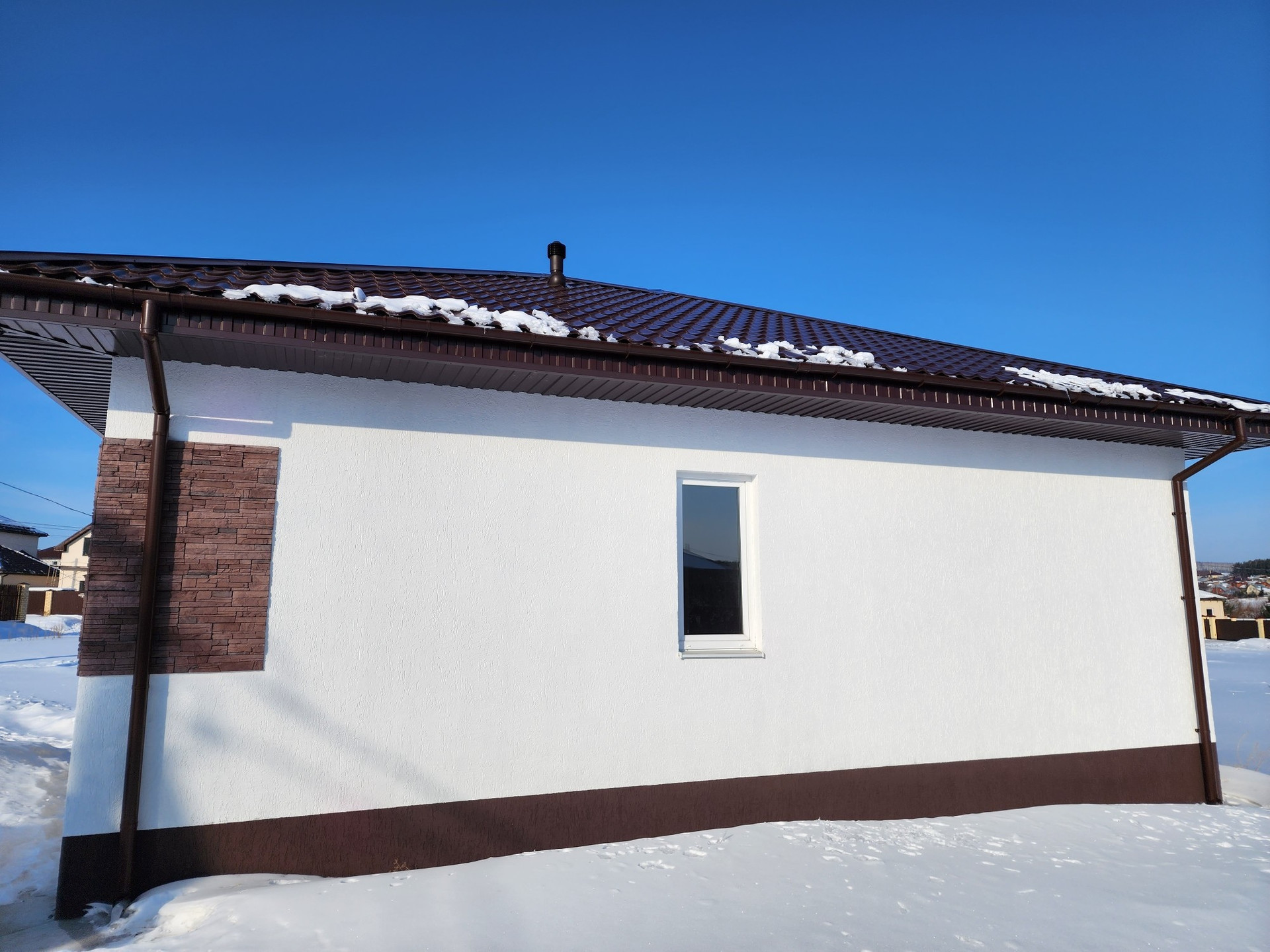 - Покрытие кровли -металлочерепица, установлена водосточная система