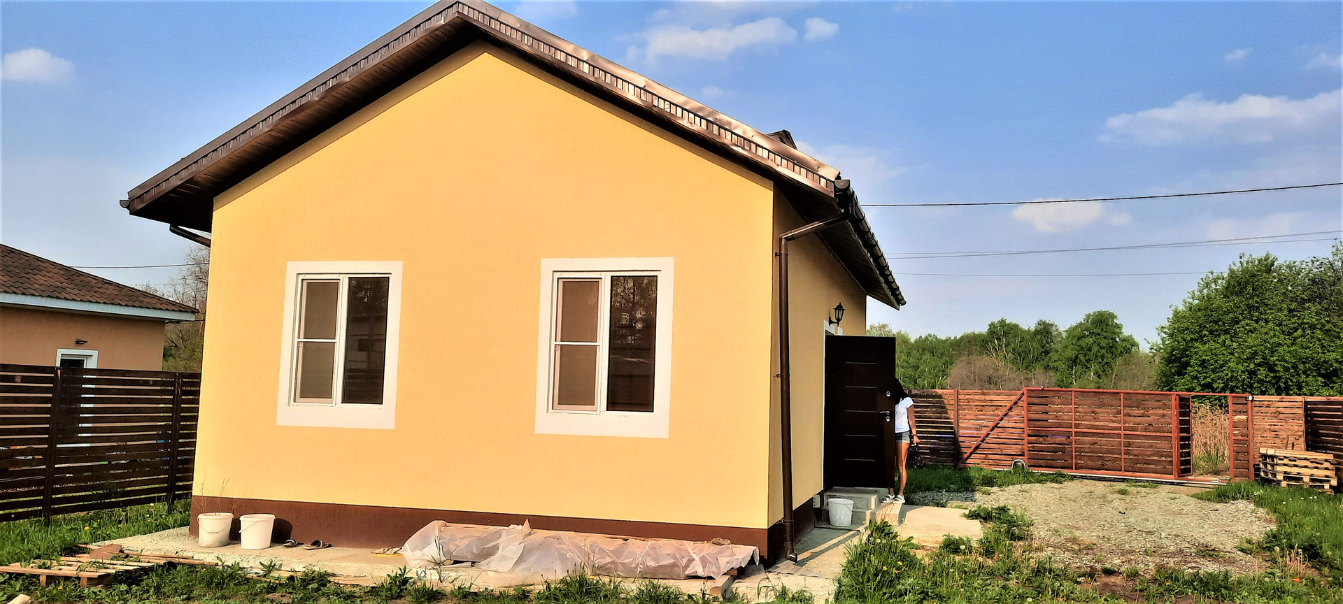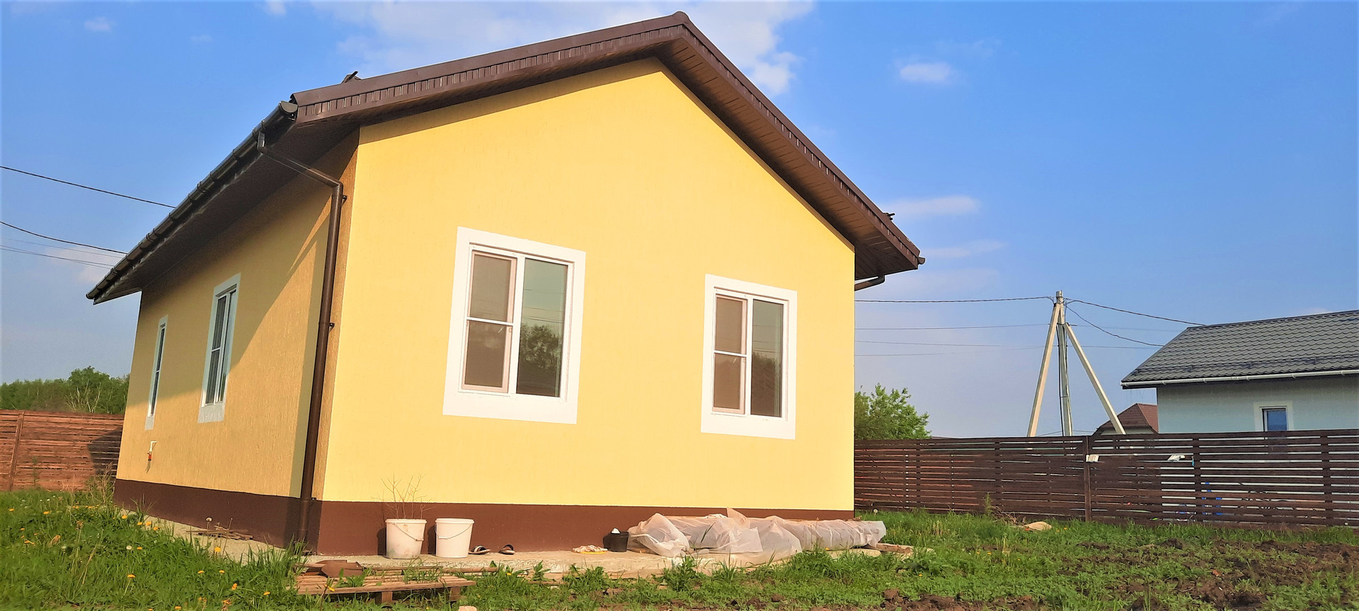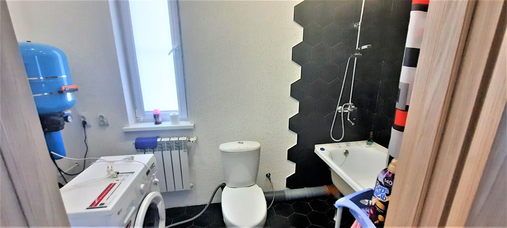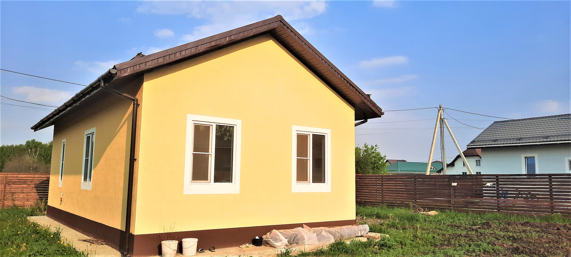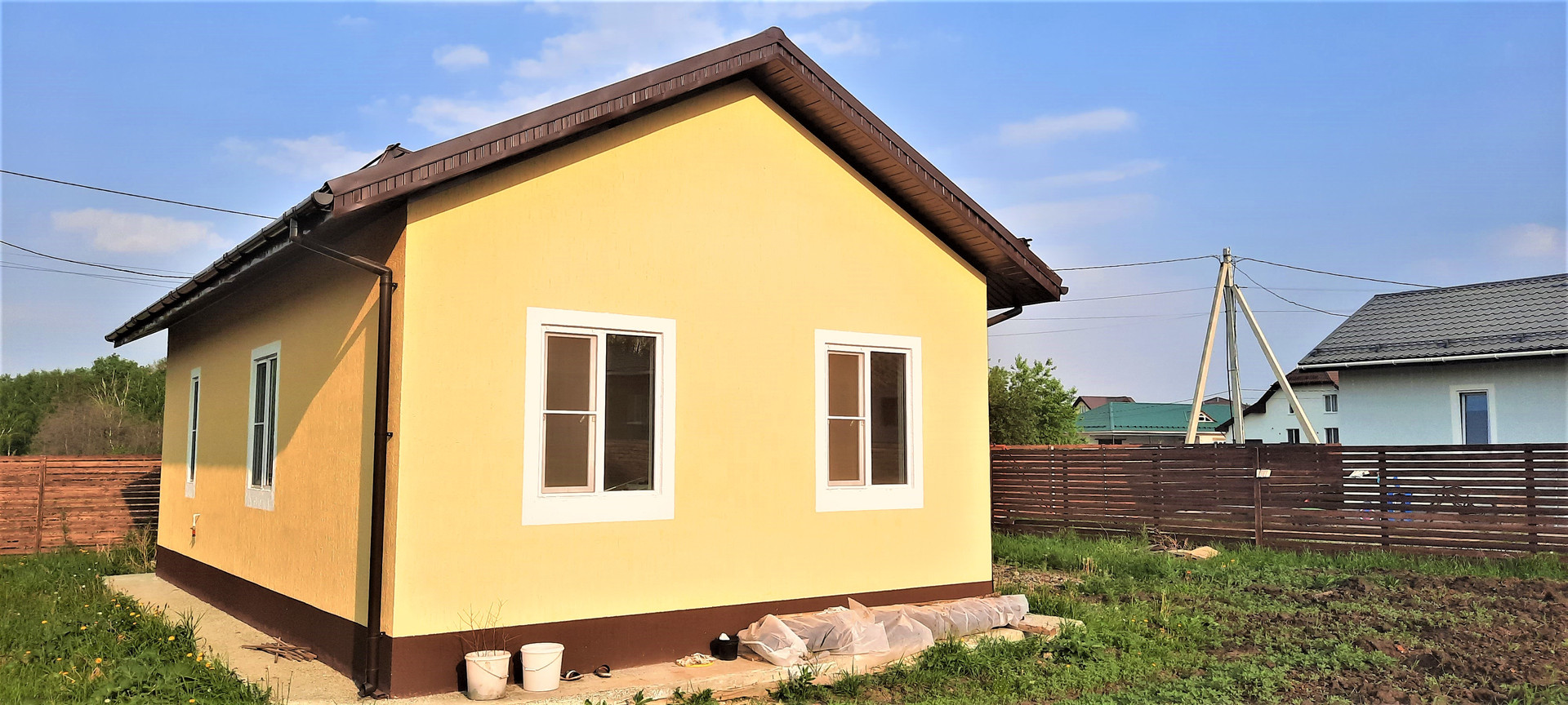 •    Дом из твинблока, утеплен, площадь 60 кв.м., 3 комнаты, кухня, санузел.