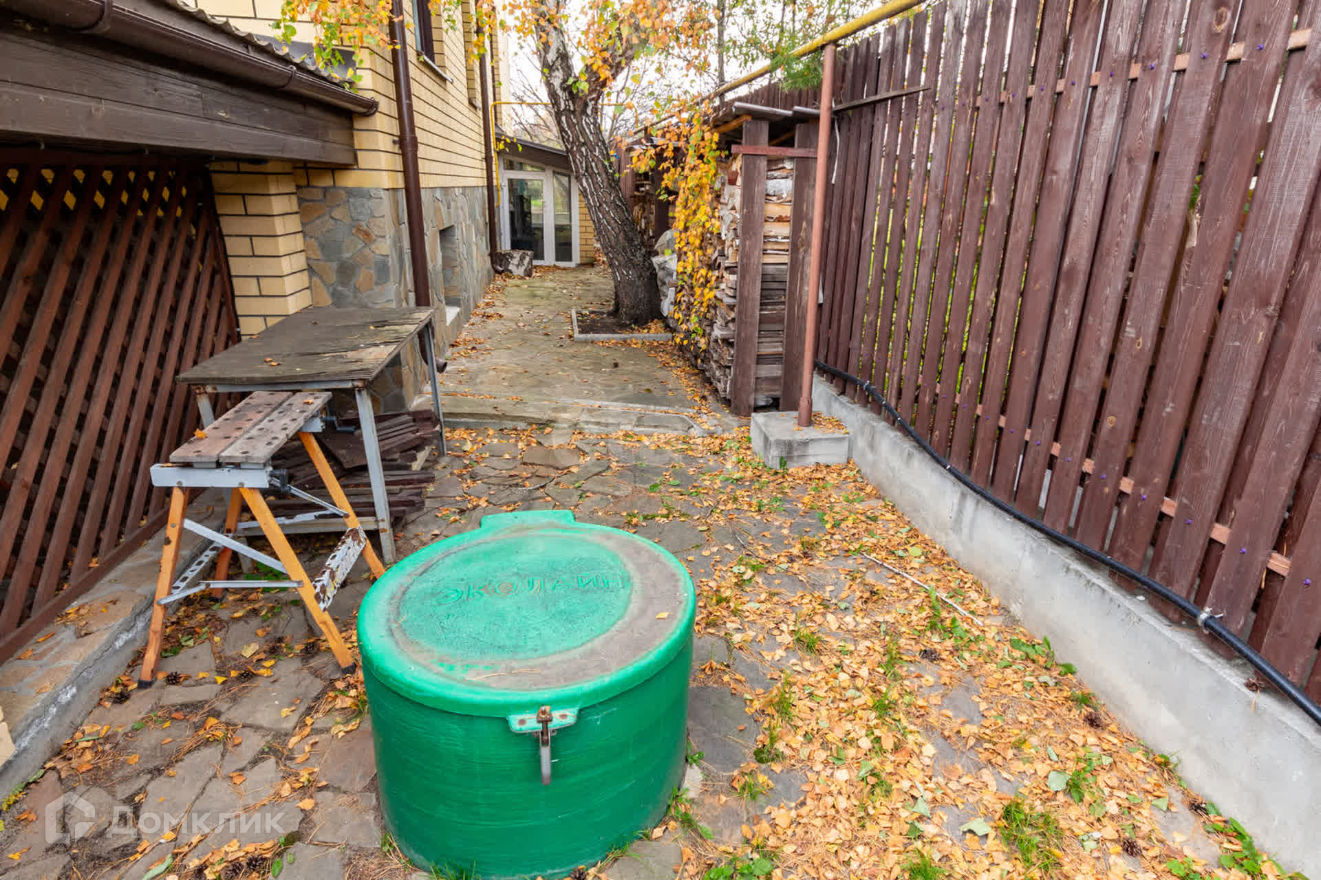 Во дворе гараж на две машины.