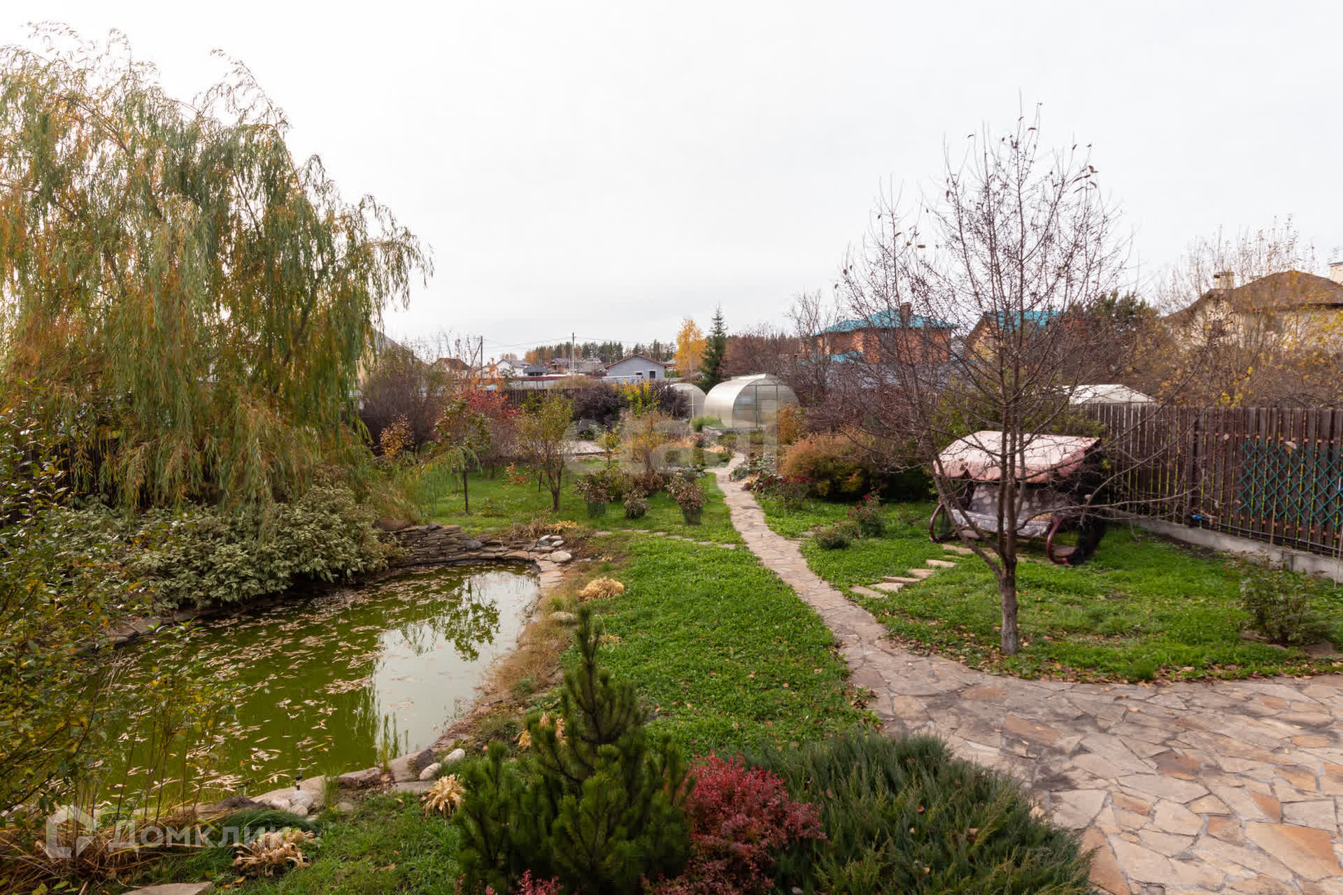 Собственный пруд на участке, заботливо подготовленные грядки для выращивания овощей.