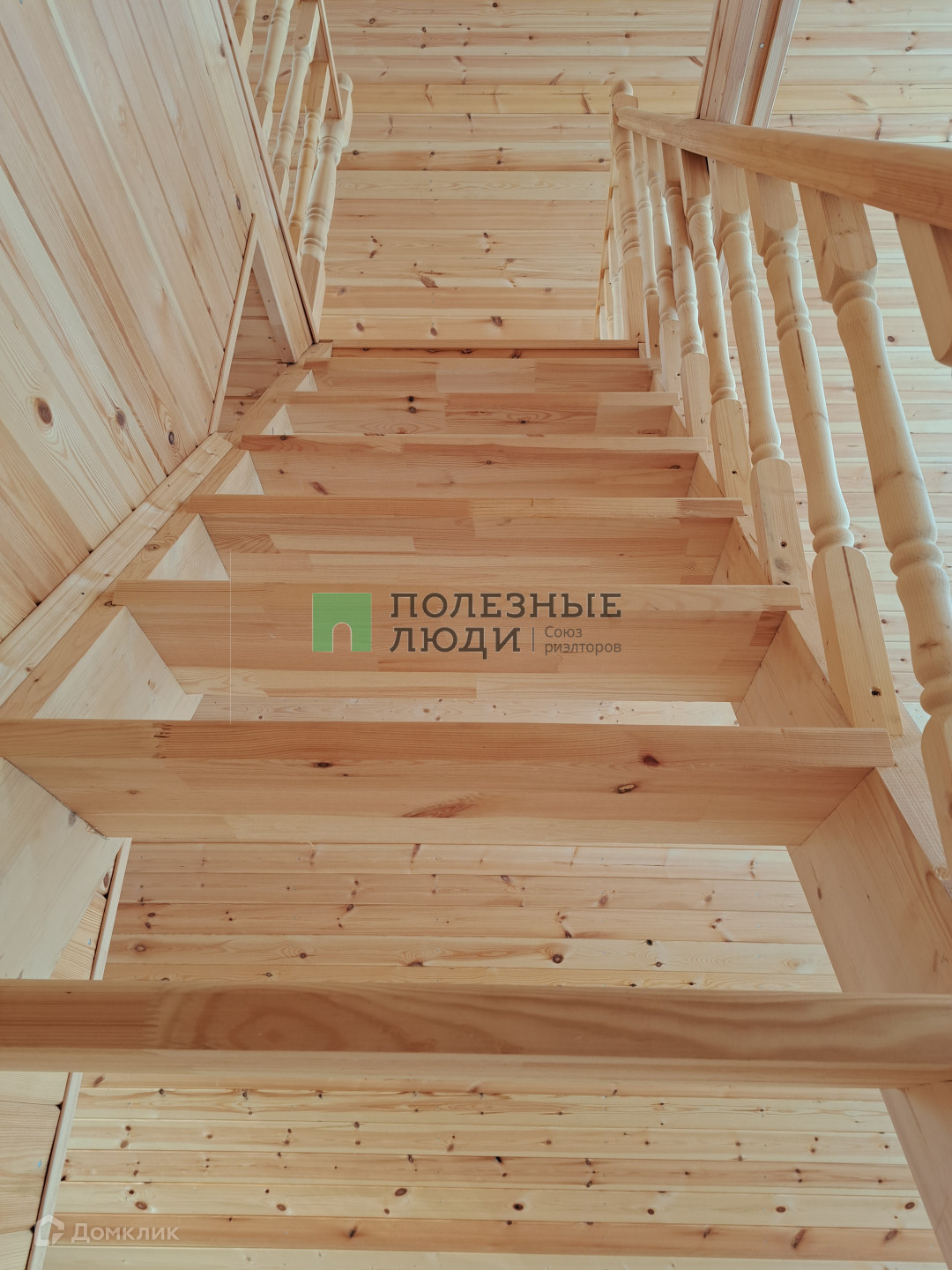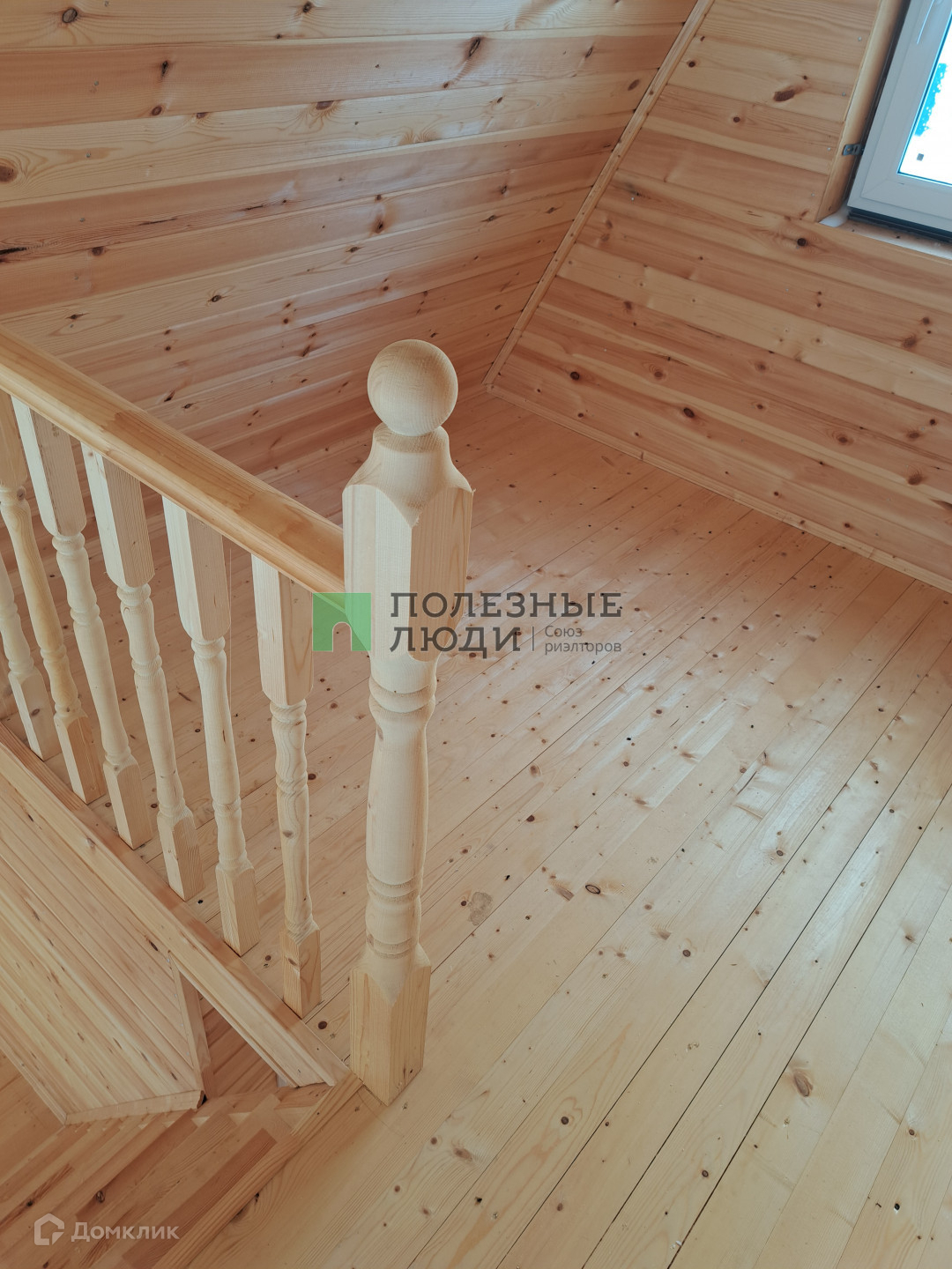 Внутри дома имеется отдельная комната с совмещенным санузлом и деревянной  лестницей ведущей на второй этаж. Привлекательный вид стен и пола выполнен из обработанной вагонки.