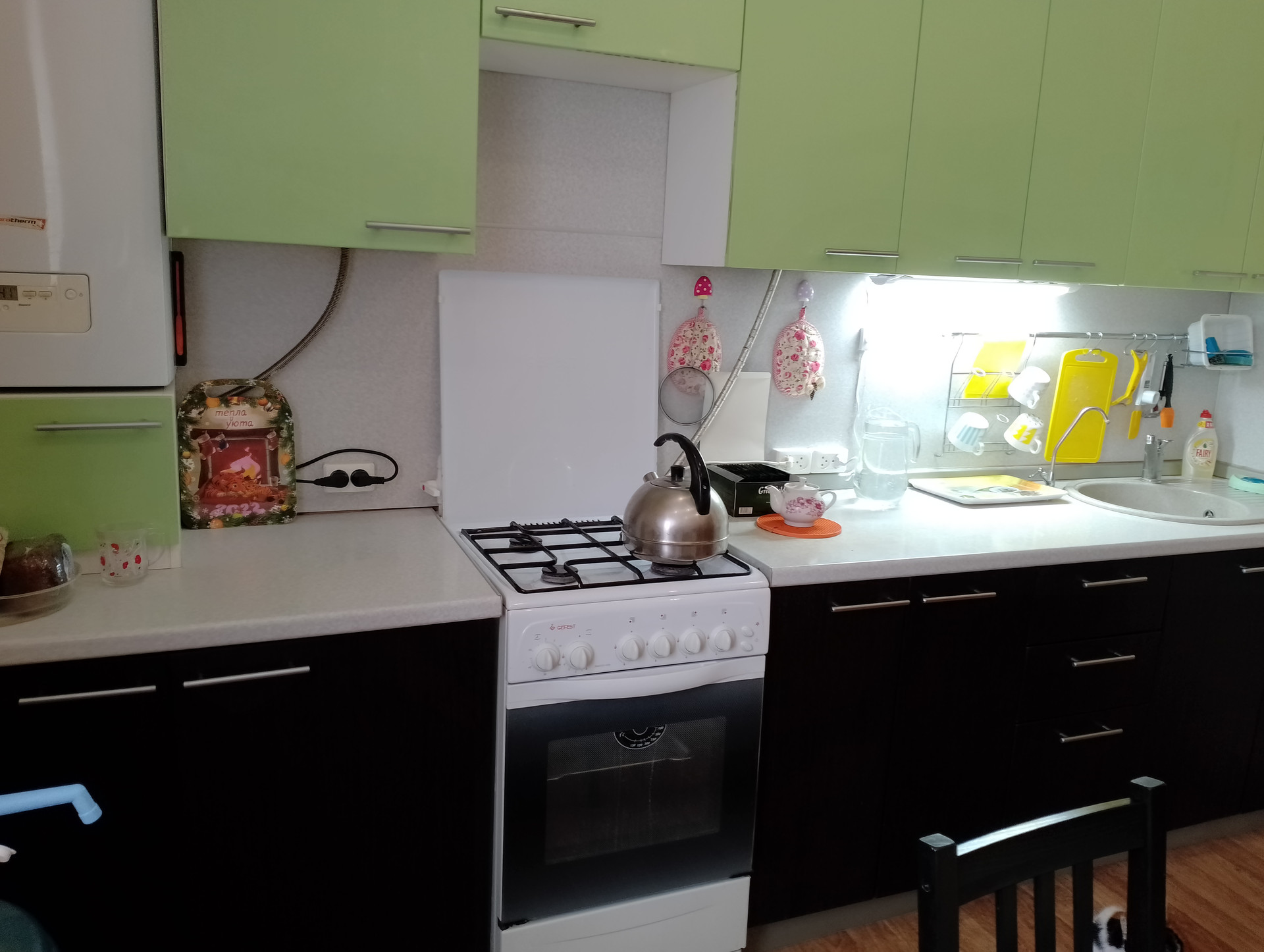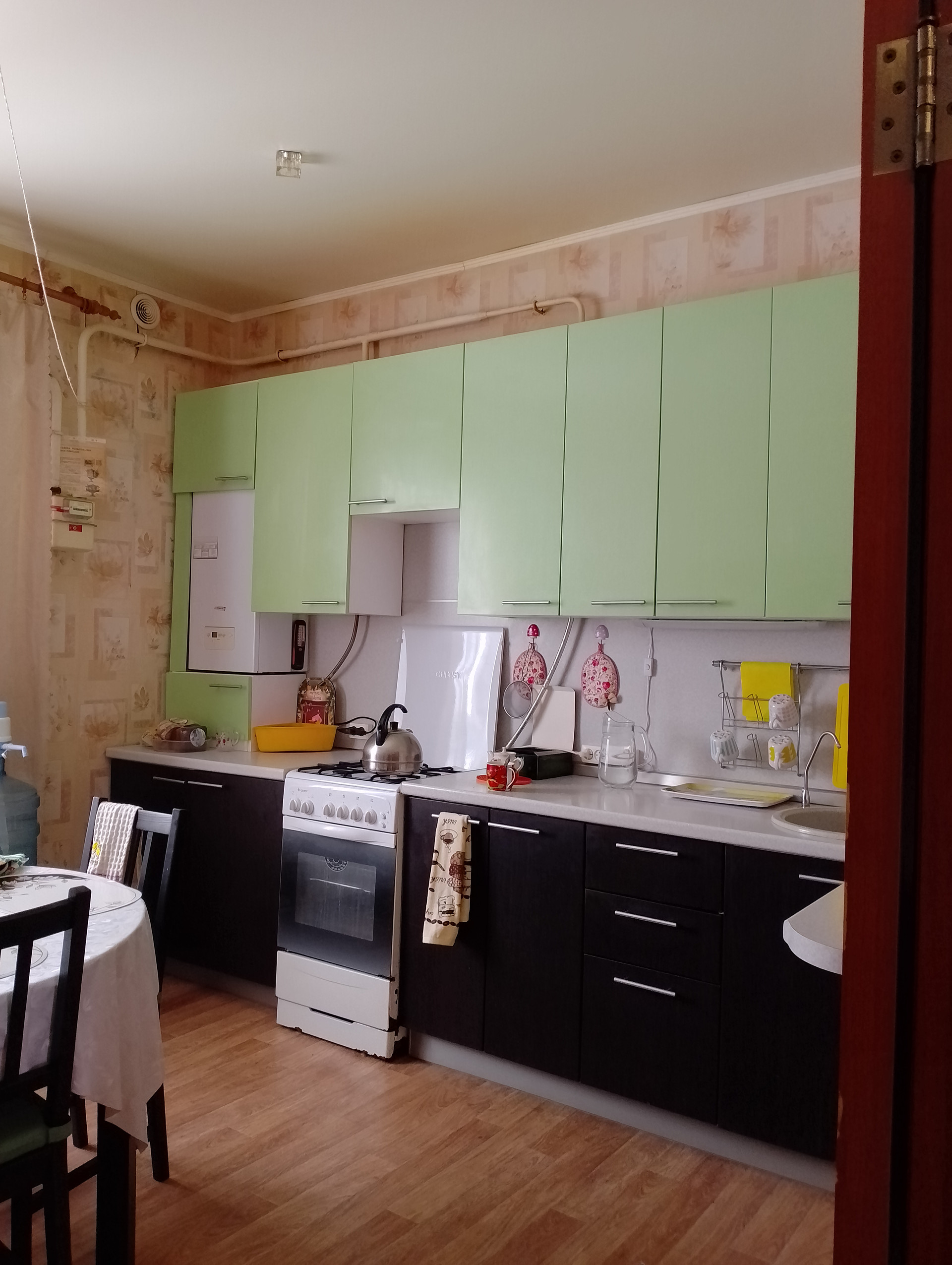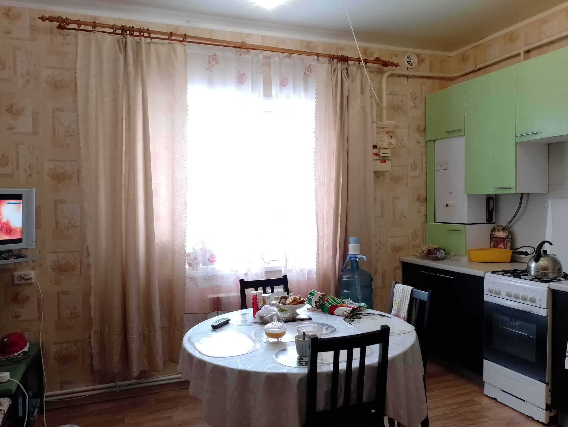 Кухонный гарнитур остается покупателям в подарок. Установленные во всем доме стеклопакеты надежной фирмы.