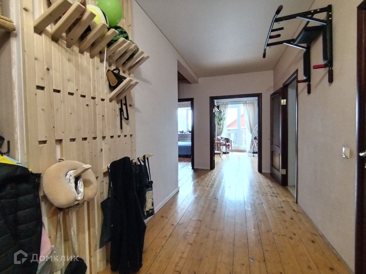 Первый этаж - коридор, С/У, просторная кухня - гостиная, гардеробная и две спальни;