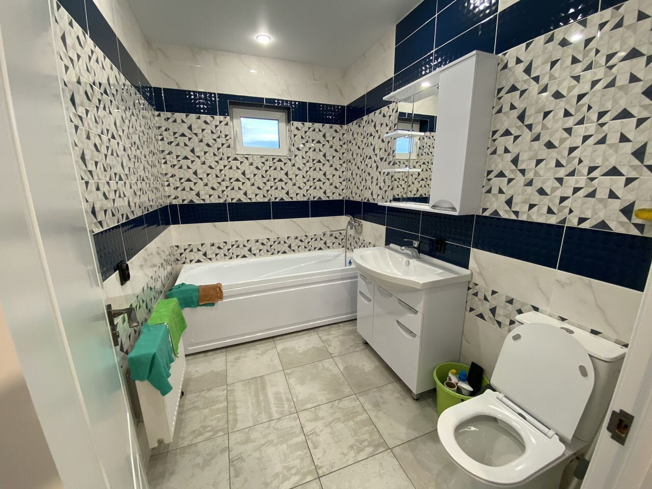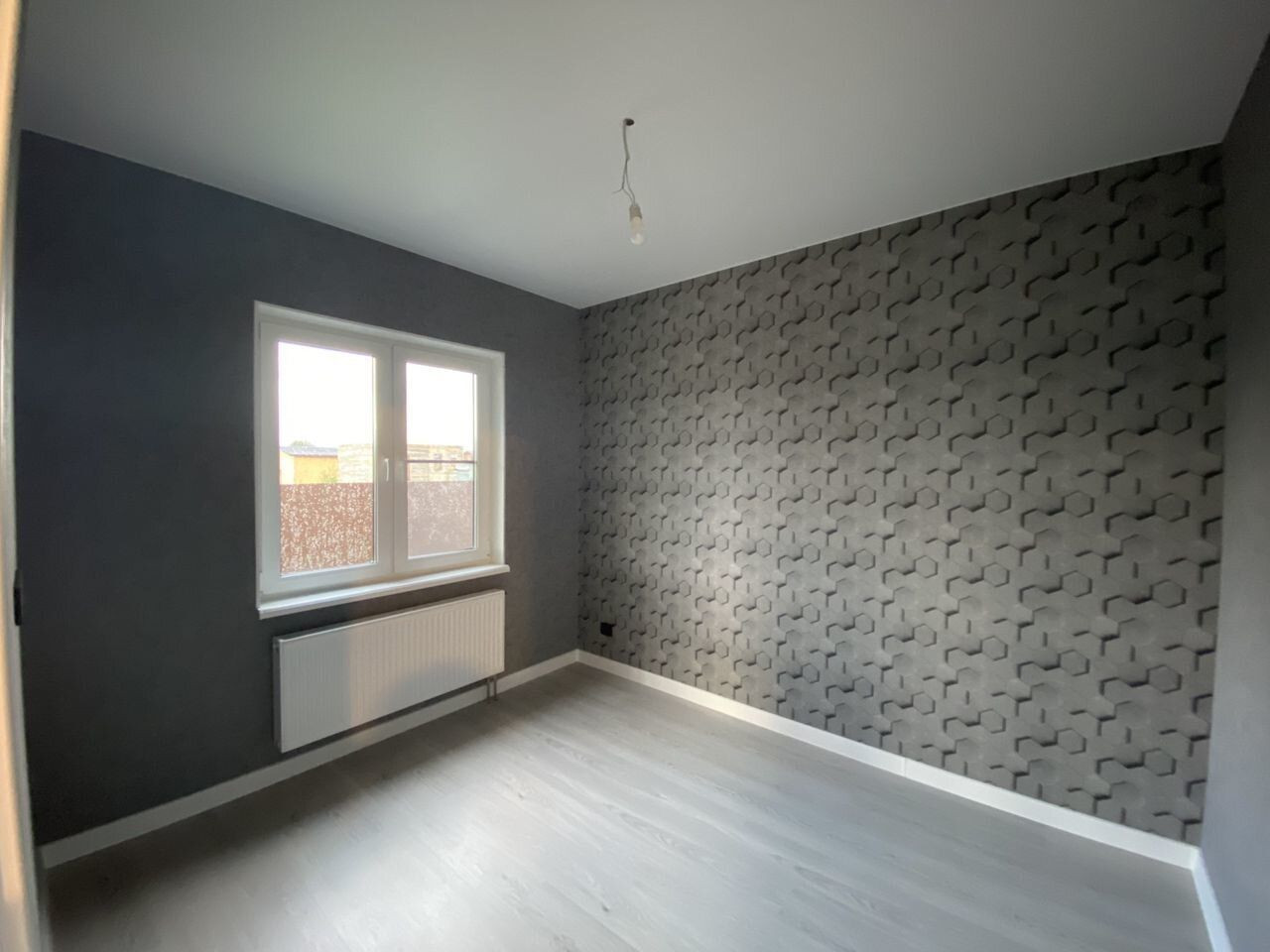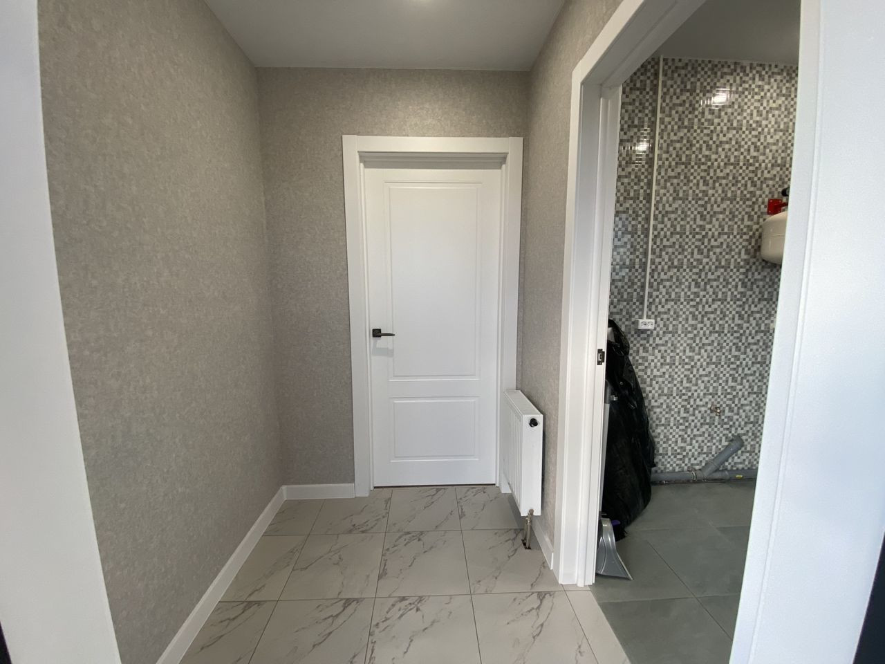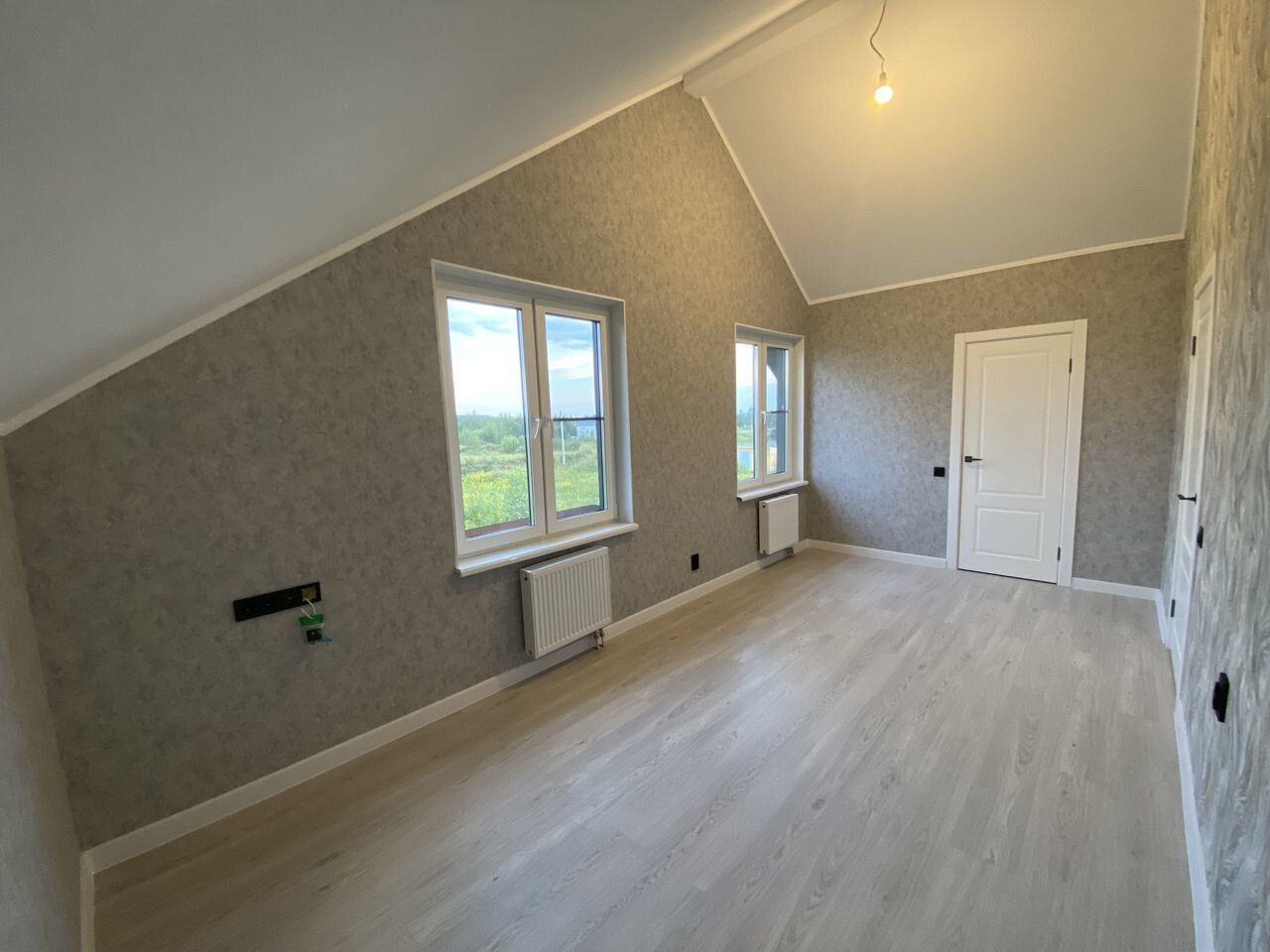 Белые стены, ламинат 33 класса, керамогранит в санузлах, добротные межкомнатные двери, натяжные потолки.