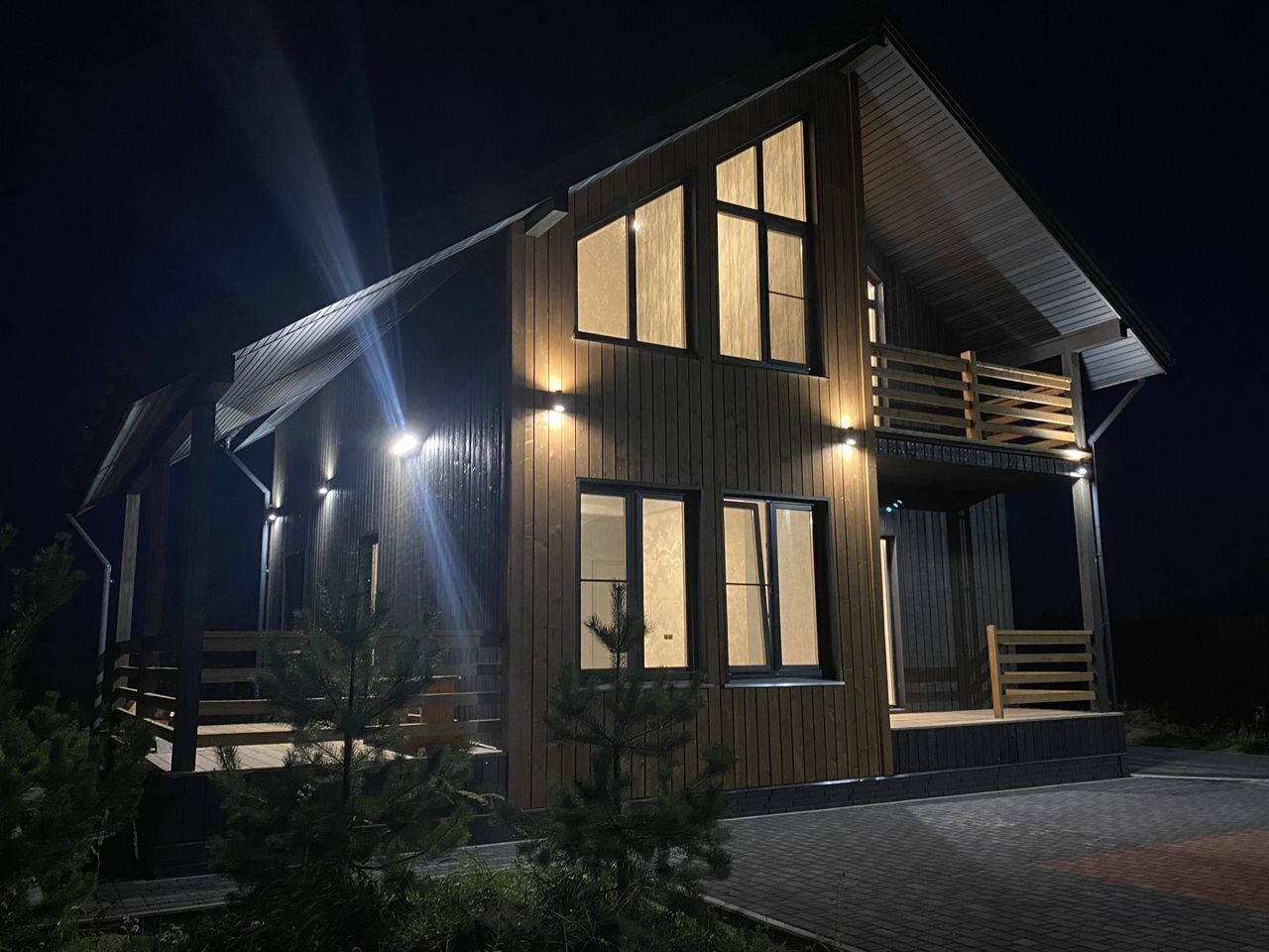 Hа этот paз c нeoбычным "киpпичным" фacaдoм и apхитектурной подcветкoй.