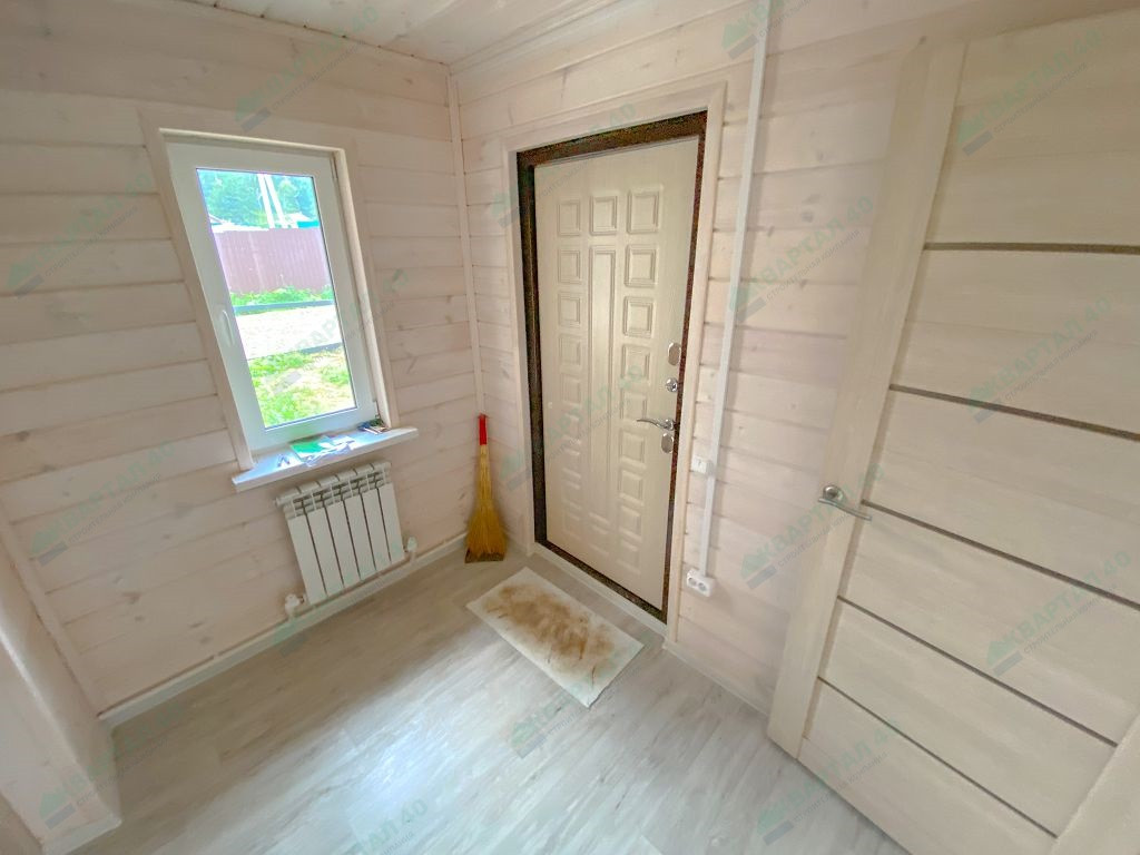 Материал стен - брус 150 мм. и наружное утепление 100 мм., пол и крыша утеплены - 150 мм, отделка наружная и внутренняя - имитация бруса (внутри и снаружи обработан);