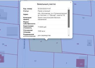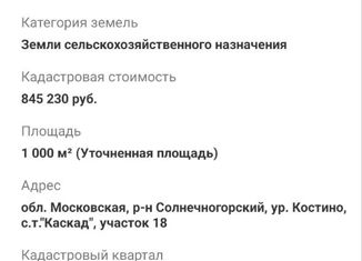 Московская область, г.о. Солнечногорск, садовое товарищество Каскад, уч. 18. Продается земельный участок 10 соток, ВРИ для садоводства. Коммуникации: электричество. Участок с небольшим уклоном. СНТ находится в тихом спокойном месте, вокруг грибной лес. Все документы готовы. Межевание выполнено. Идеальное место для дачи. Можно построить и зарегистрироват... |
