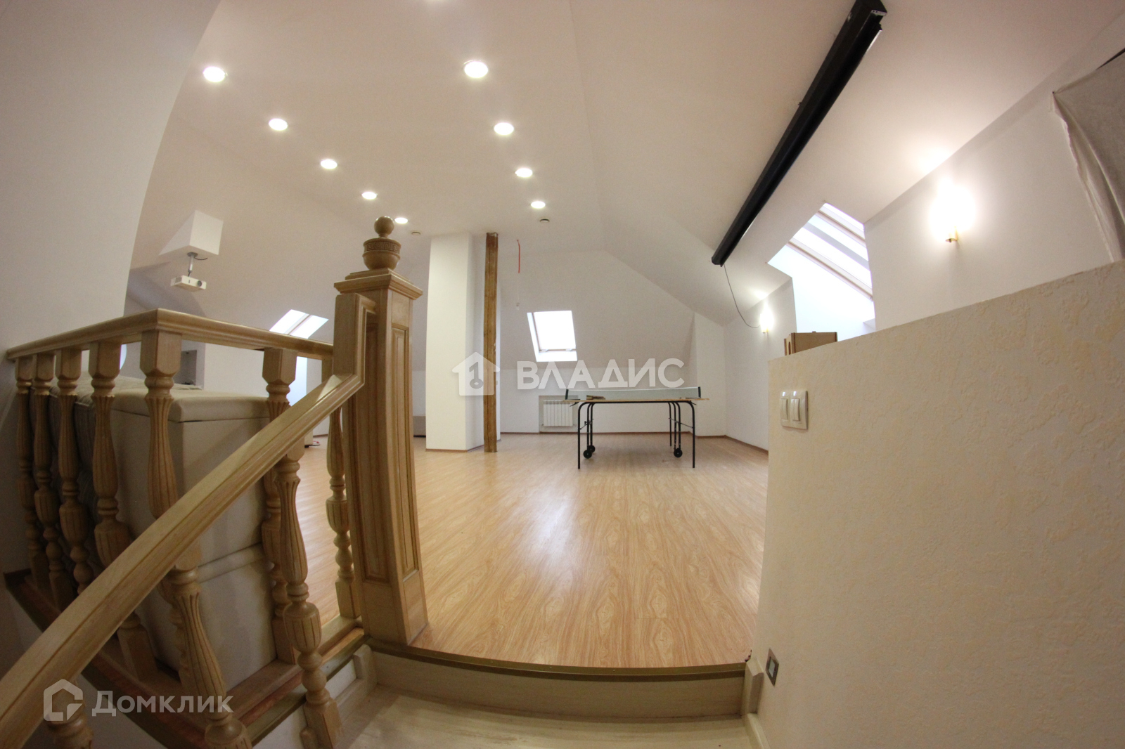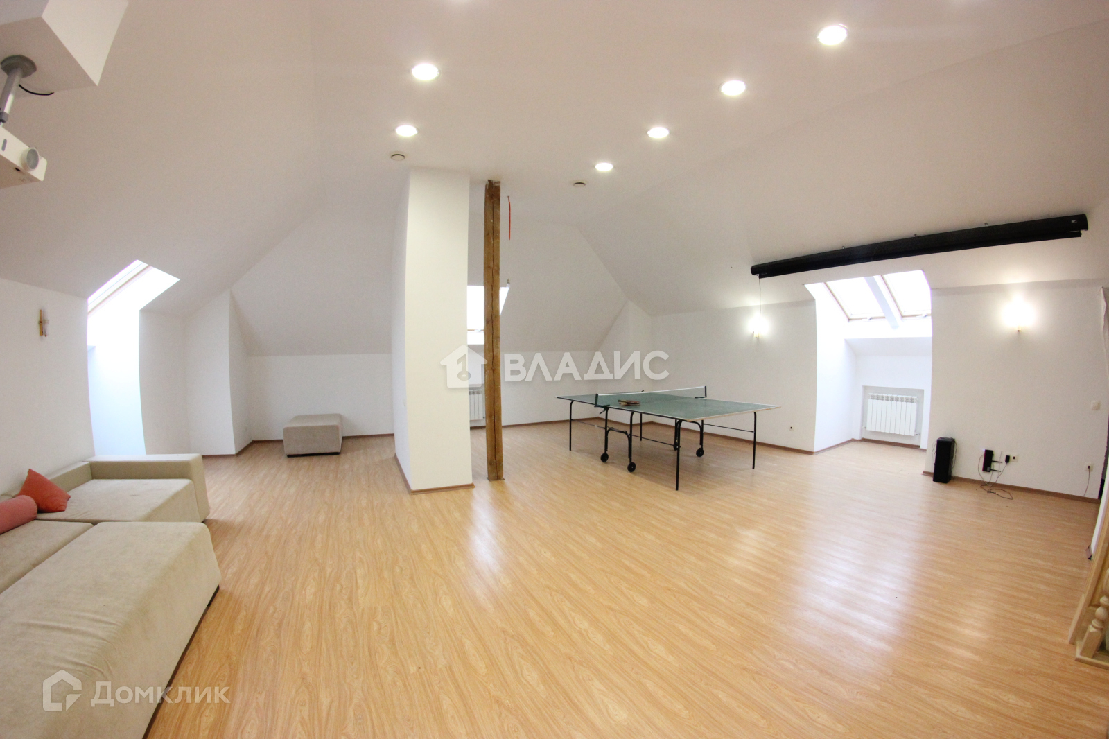 на мансарде расположен большой диван, для всей семьи и проектор с экраном. Подведены все коммуникации, можно сделать ванную комнату и жилой этаж.