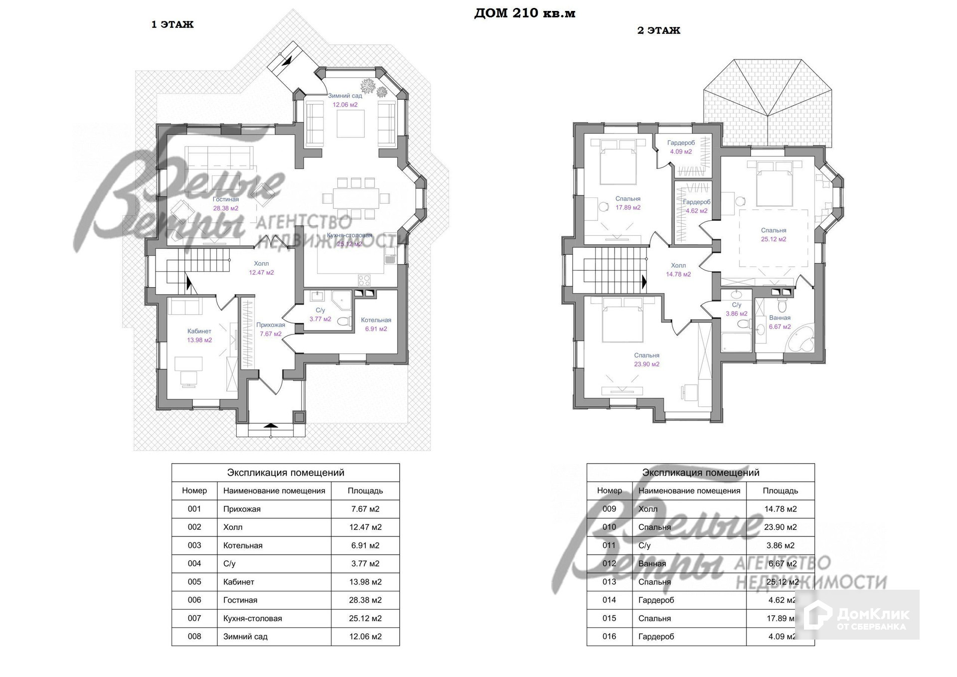 2-ой этаж: холл 14.8 кв.м, мастер спальня 25.1 кв.м с гардеробной 4.6 кв.м и санузлом с ванной 6.7 кв.м, спальня 17.9 кв.м с гардеробной 4 кв.м, спальня 24 кв.м, санузел с душевой 4 кв.м..
