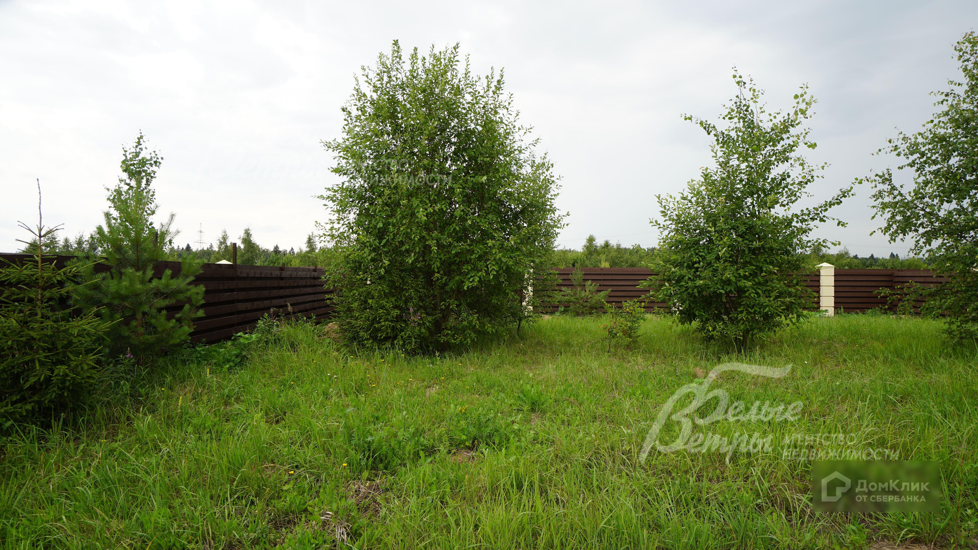 Тип участка: полевой с молодыми деревьями, 2 сосны на участке.