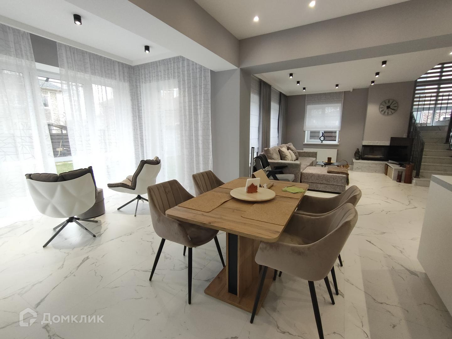1-й этаж: холл, котельная, гостевой с/у, кабинет, уютная гостиная с дровяным камином, функциональная кухня, столовая с выходом на просторную террасу.