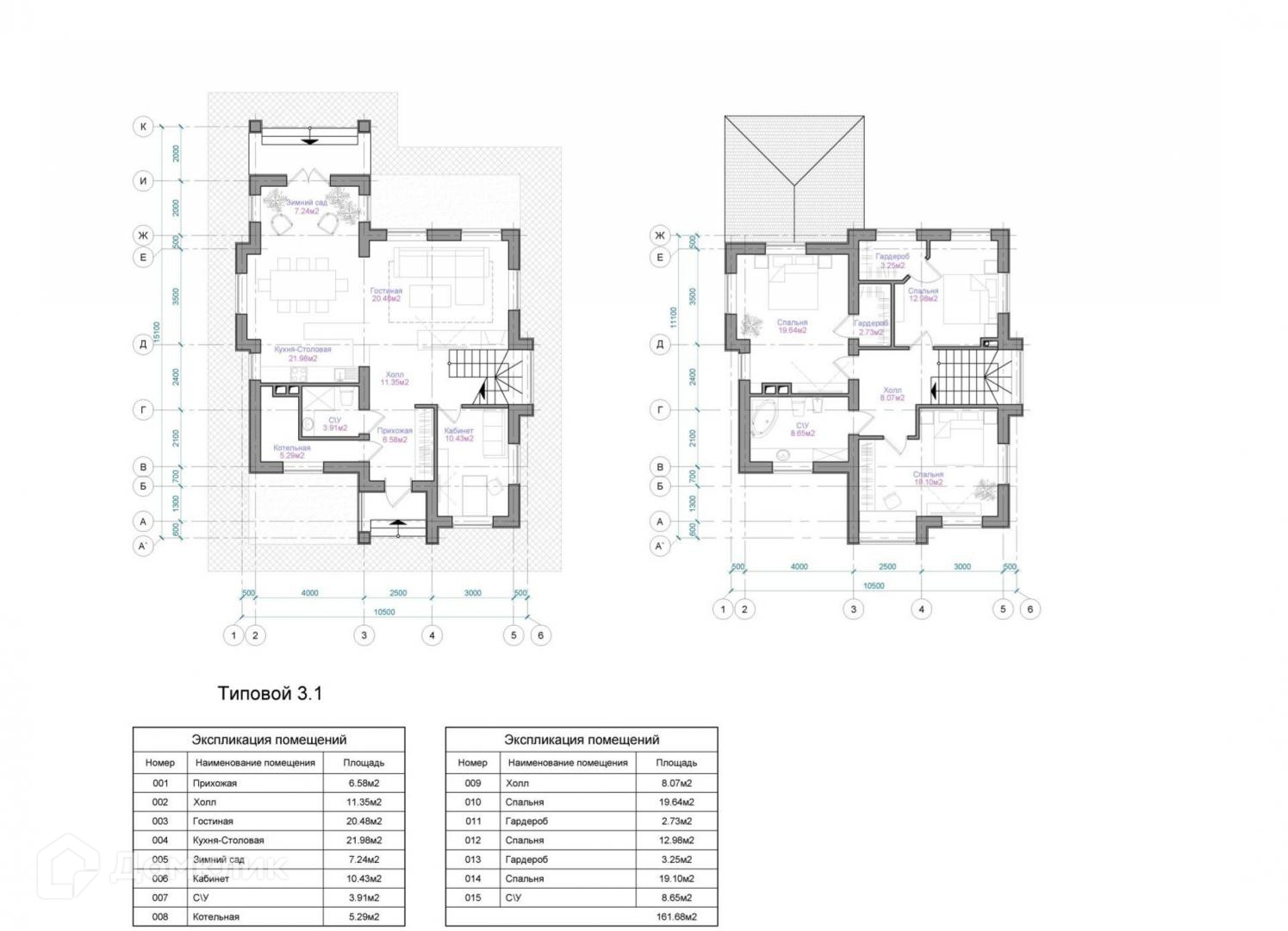 2-й этаж: холл, 3 спальни, большой с/у.