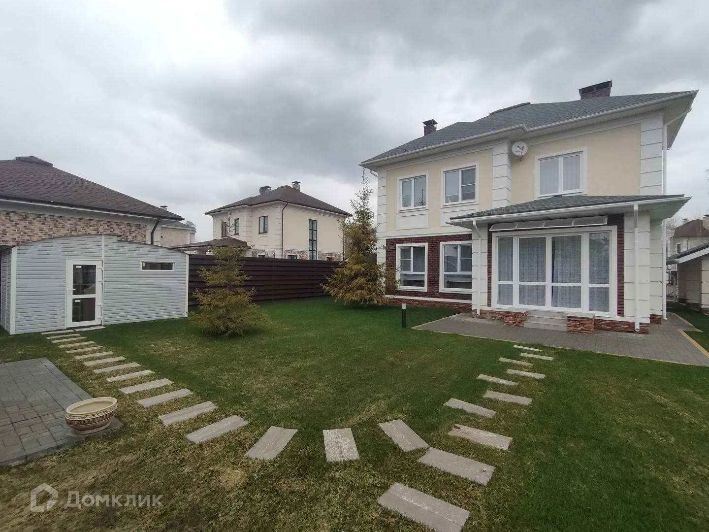 150 кв. м. ,10 сот. земельный участок с ландшафтным дизайном, шашлычная, хоз.блок, навес на две машины, участок облагорожен, посажены туи, яблони по периметру сделан красивый кованный забор в едином стиле поселка. фундамент: забивные ж/б сваи с ростверком, коробка: поризованный кирпич, окна: двухкамерный стеклопакет, кровля: мягкая черепица, перекрытия: сборные ж/б перекрытия.