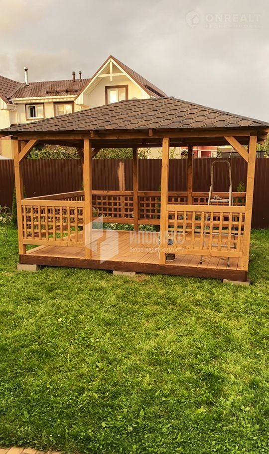 Автоматические ворота. На участке навес для 2 автомобилей (6 м на 6 м), беседка (3 м на 4 м), хозпостройка (30 кв. м). Установлено видеонаблюдение.