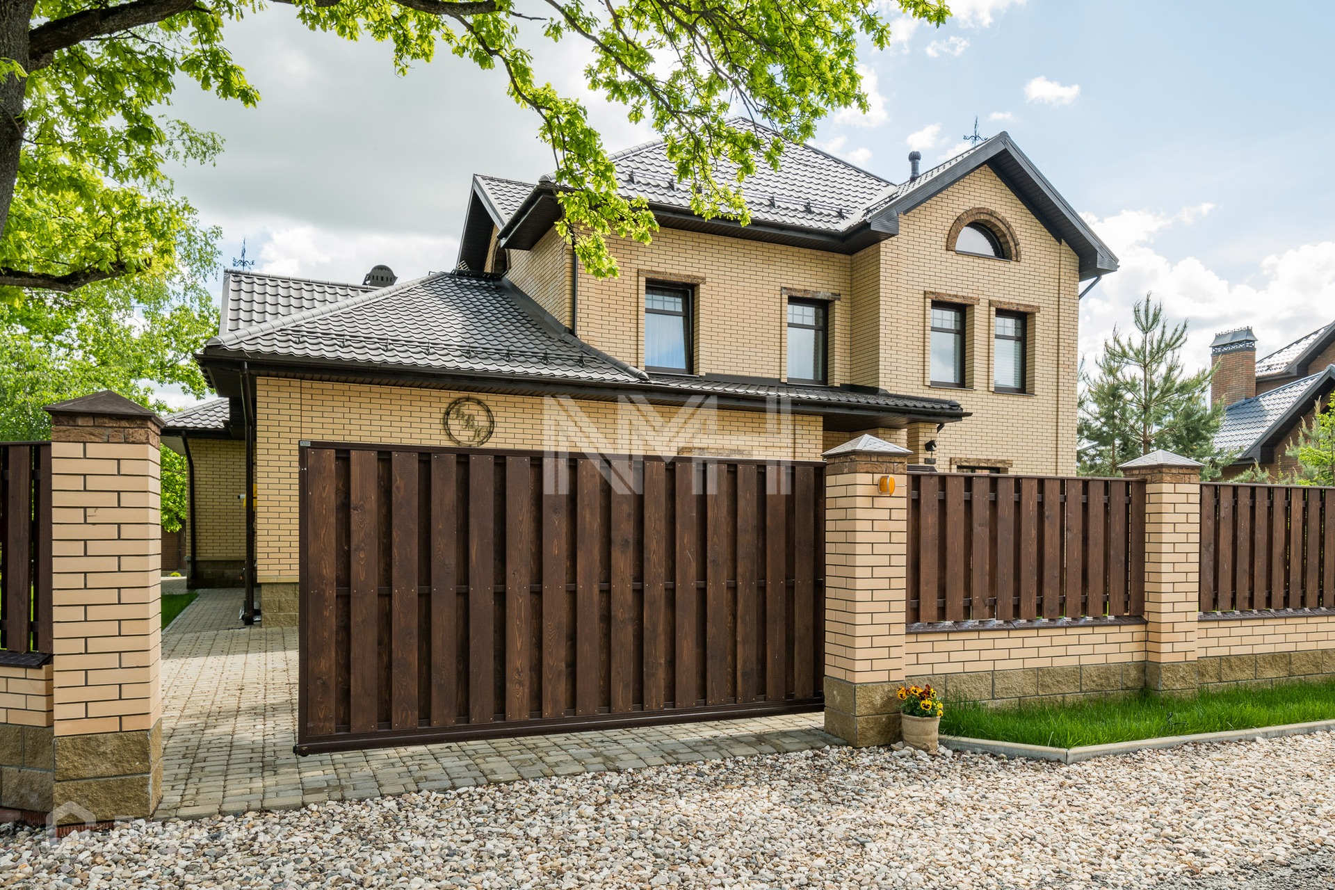 Стены — керамоблок, облицован клинкерным кирпичом.